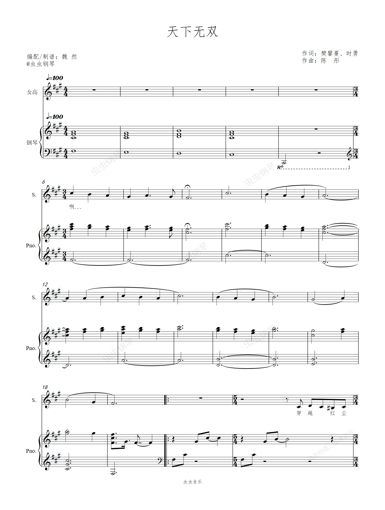钢琴谱:天下无双(正谱)——『忧伤歌声』