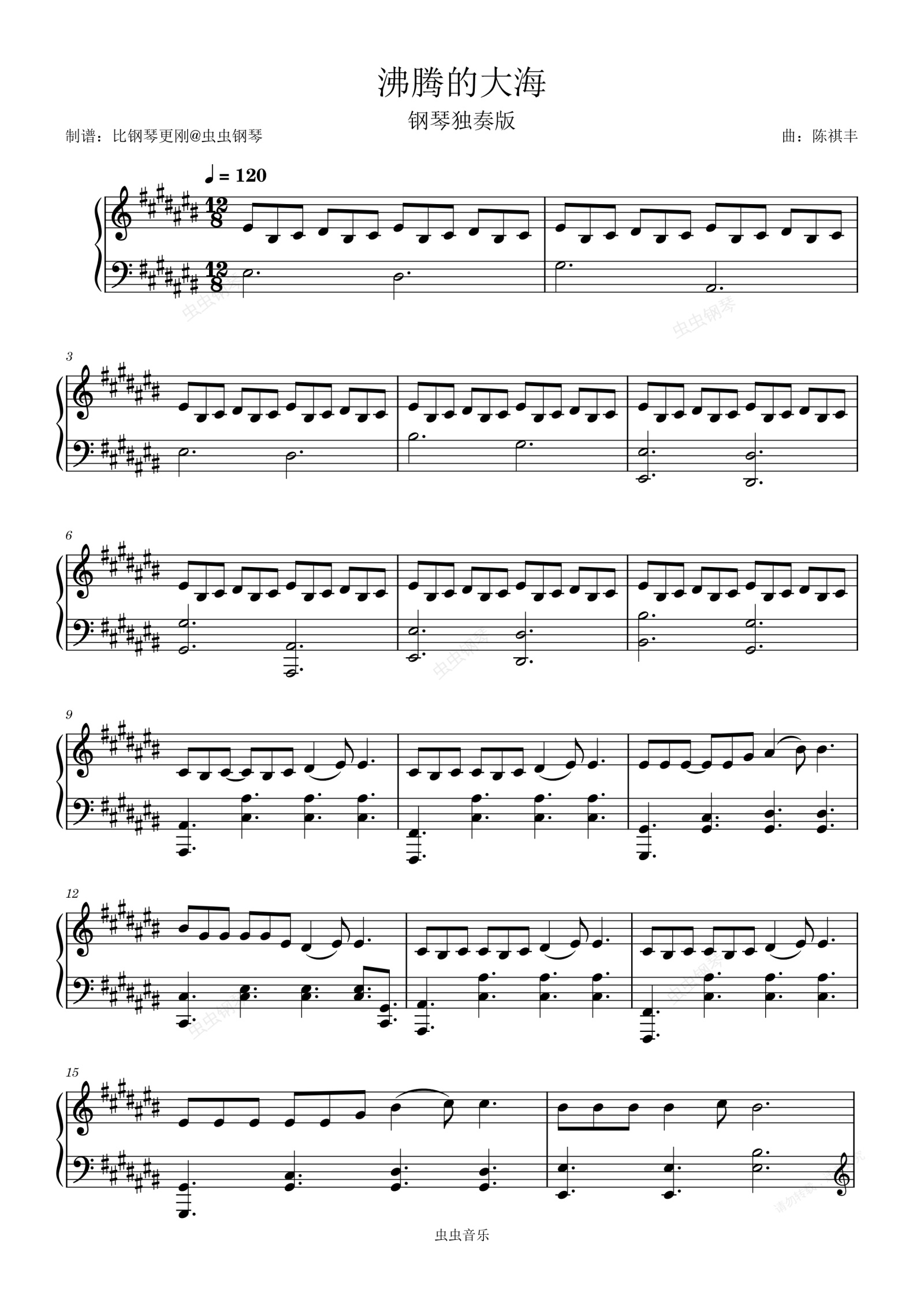 钢琴谱:沸腾的大海 独奏谱