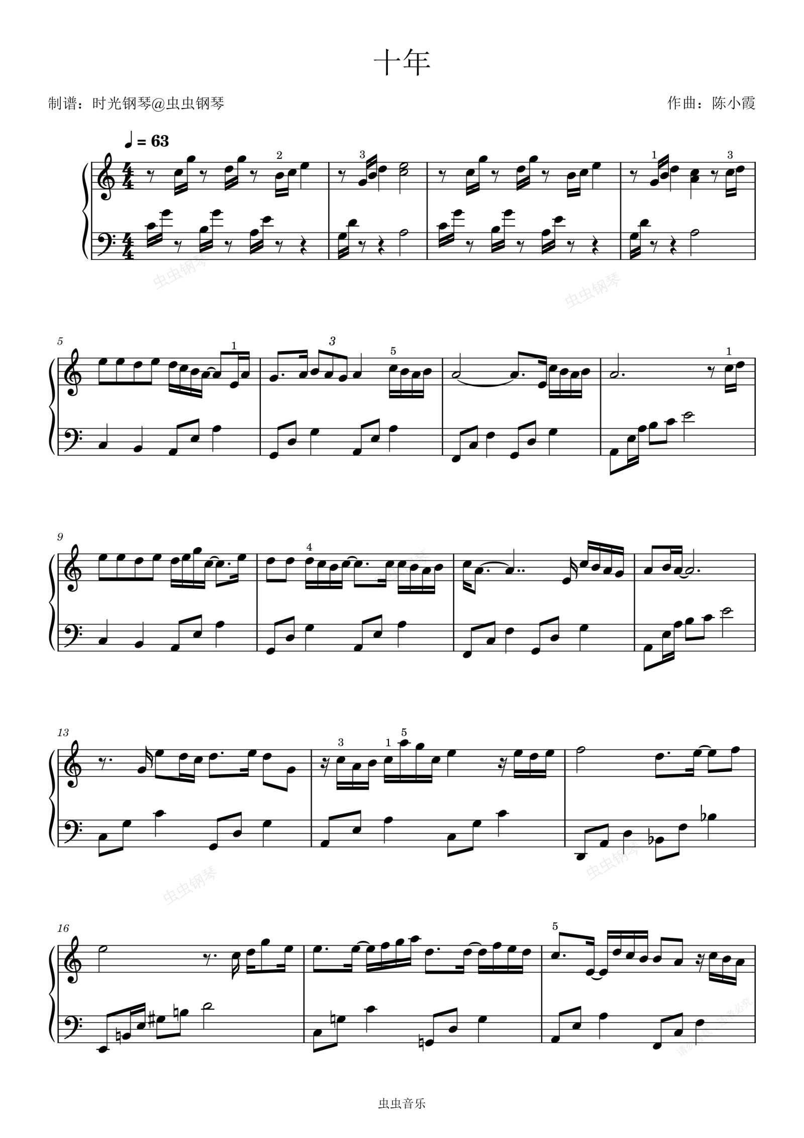 钢琴谱:十年(明年今日) 陈奕迅 简单好听