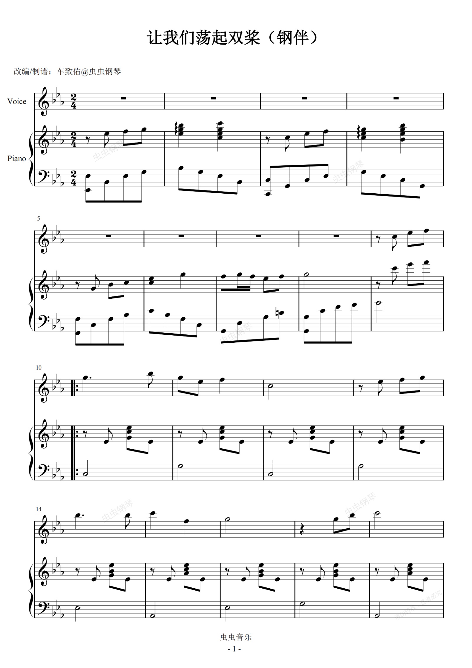 钢琴谱:让我们荡起双桨(钢琴伴奏)-超简单