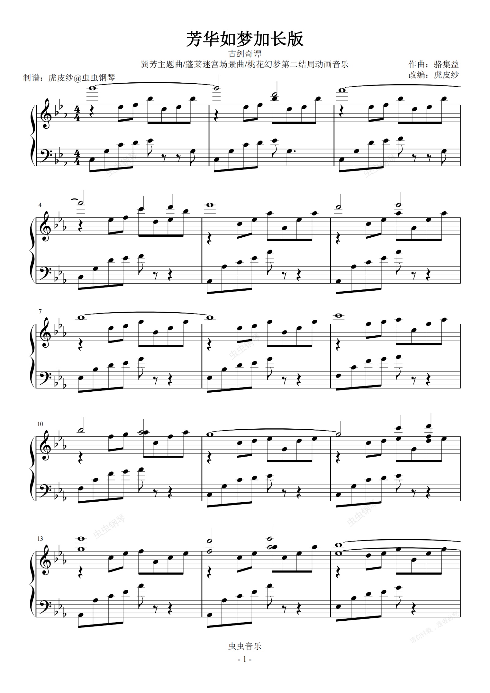 钢琴谱:古剑奇谭 芳华如梦加长版
