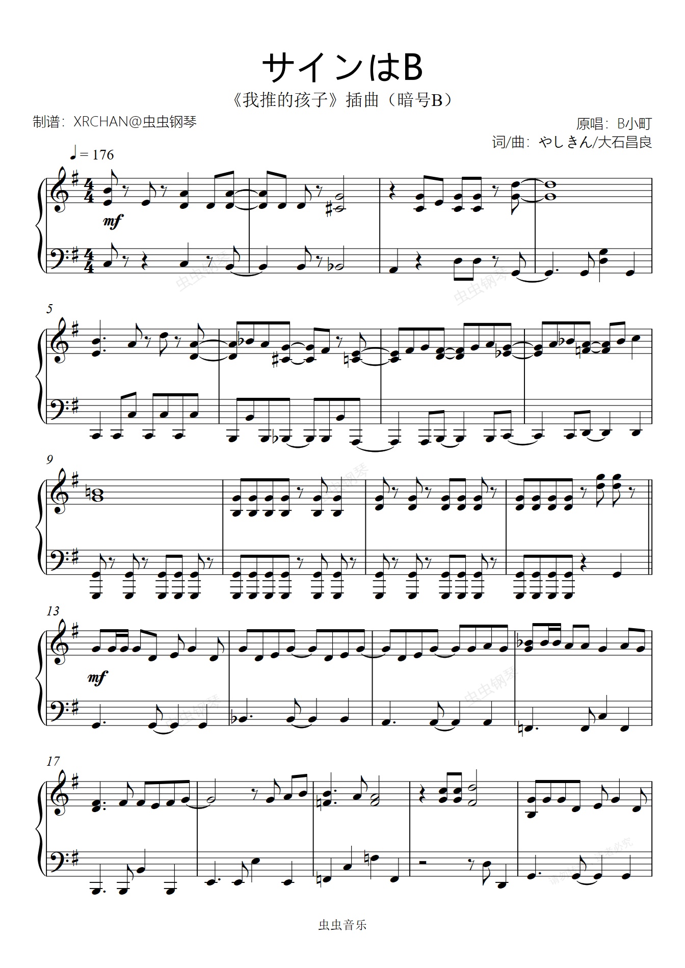 钢琴谱:サインはB 《我推的孩子》插曲(暗号B)初级G调