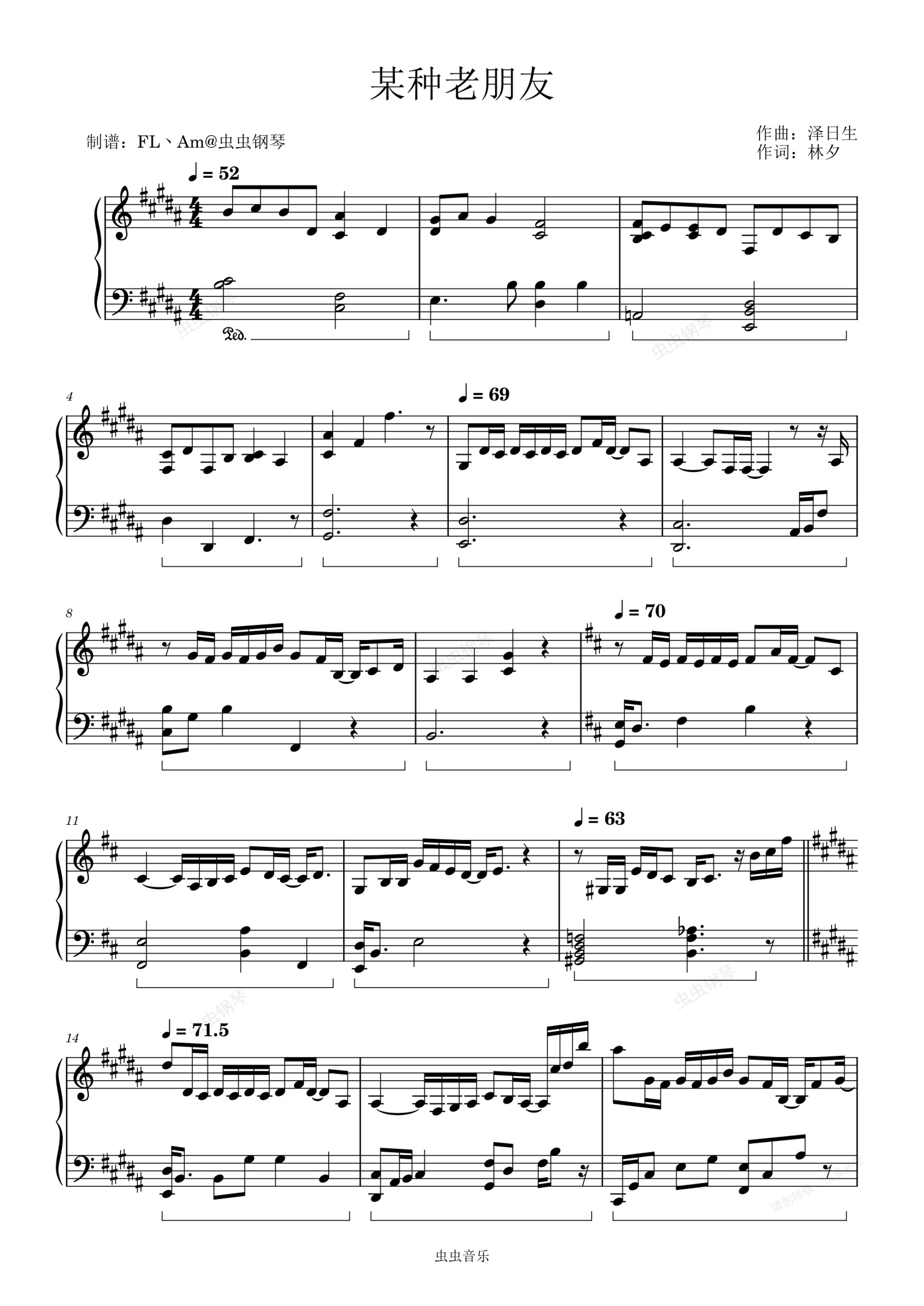 钢琴谱:某种老朋友
