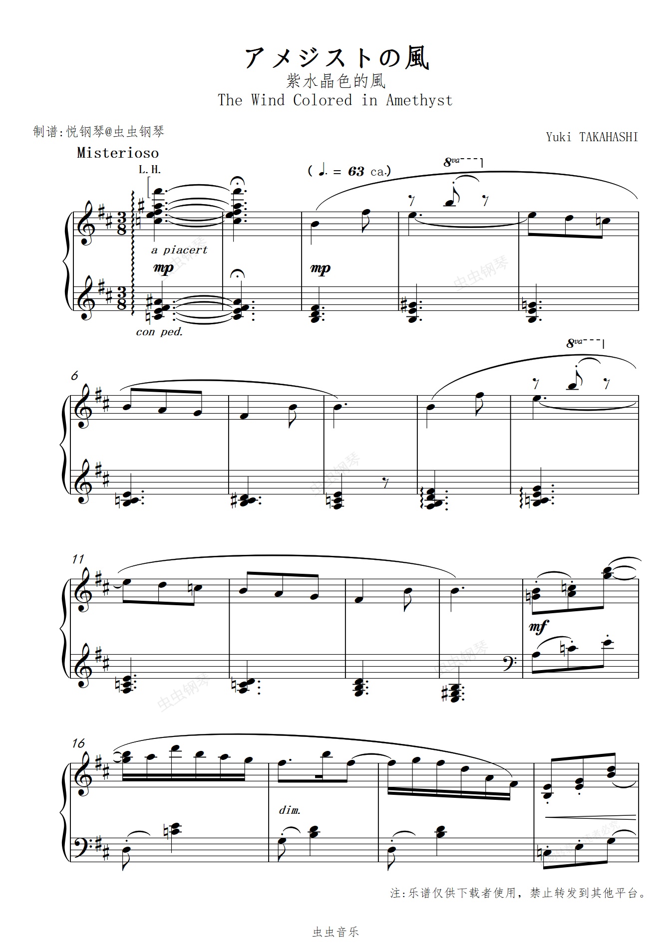钢琴谱:紫水晶色的風//The Wind Colored in Amethyst【抒情 -幻想】