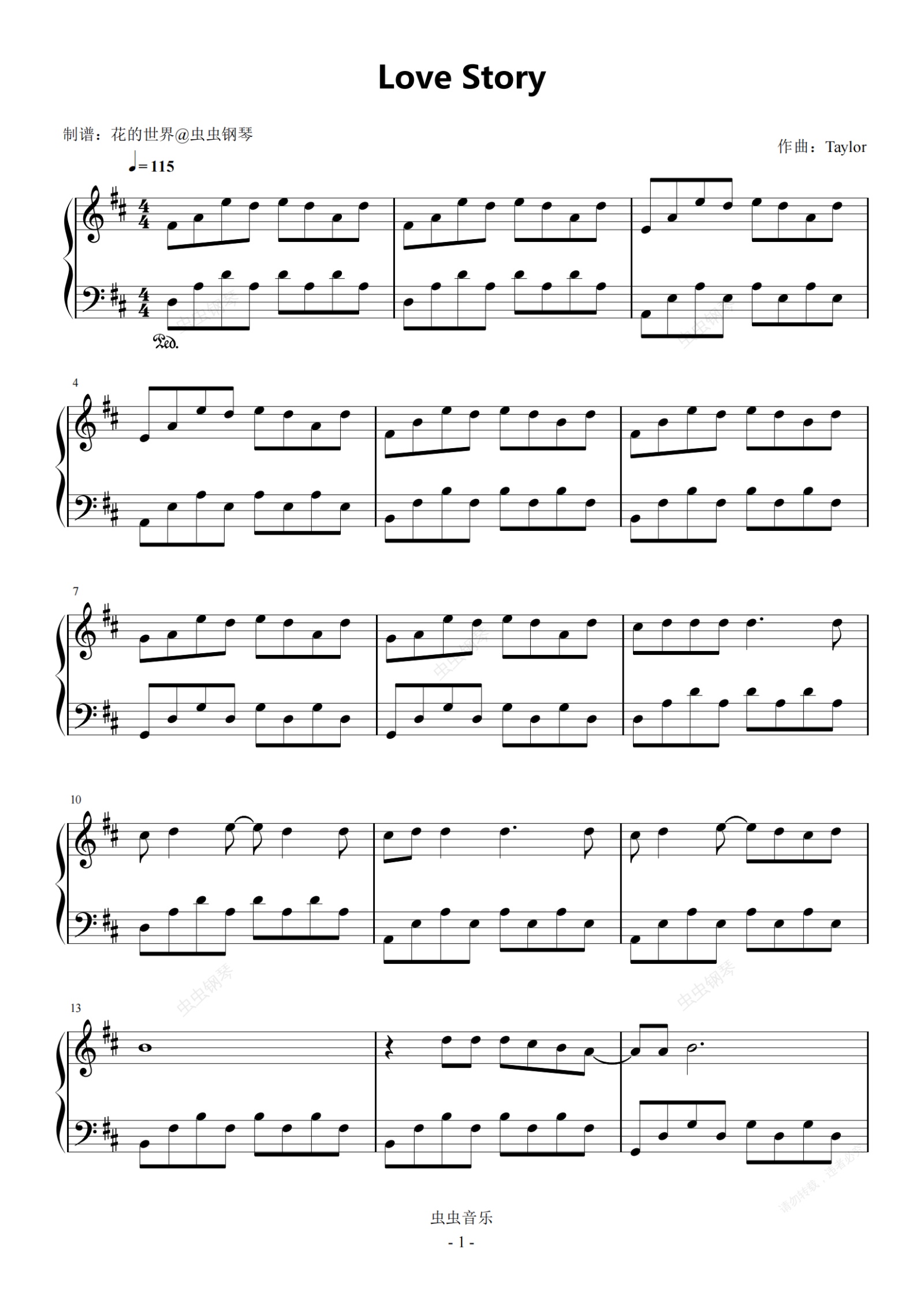 钢琴谱:Love Story 原调简易版 Taylor Swift