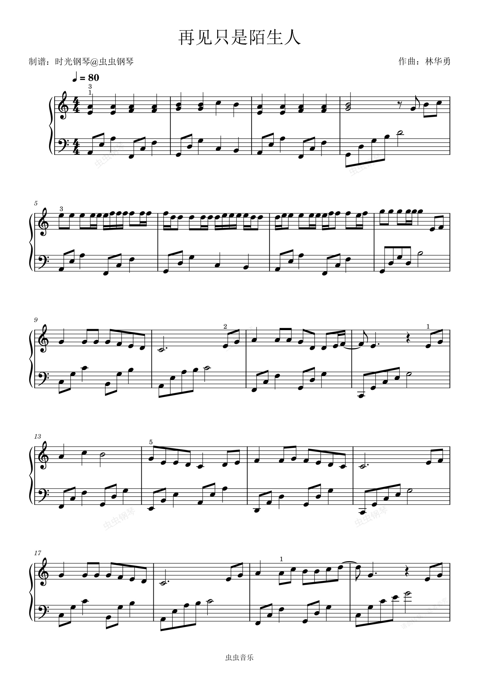 钢琴谱:再见只是陌生人 庄心妍 简单好听