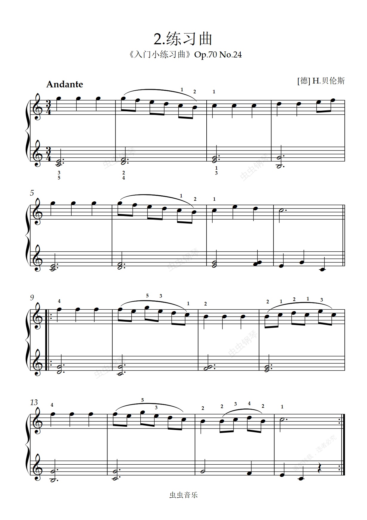 钢琴谱:1级 A项 2.练习曲 贝伦斯Op.70 No.24