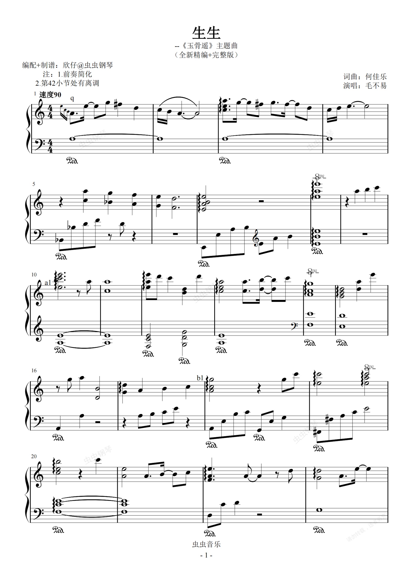 钢琴谱:毛不易-a《生生》(《玉骨遥》主题曲、完整版)