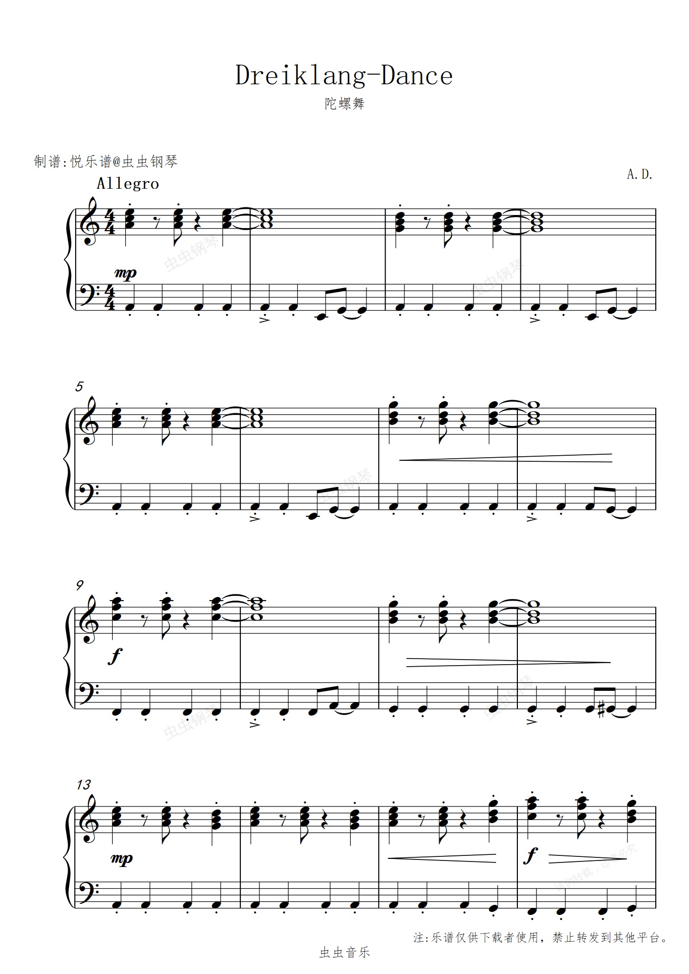 钢琴谱:陀螺舞//Dreiklang-Dance