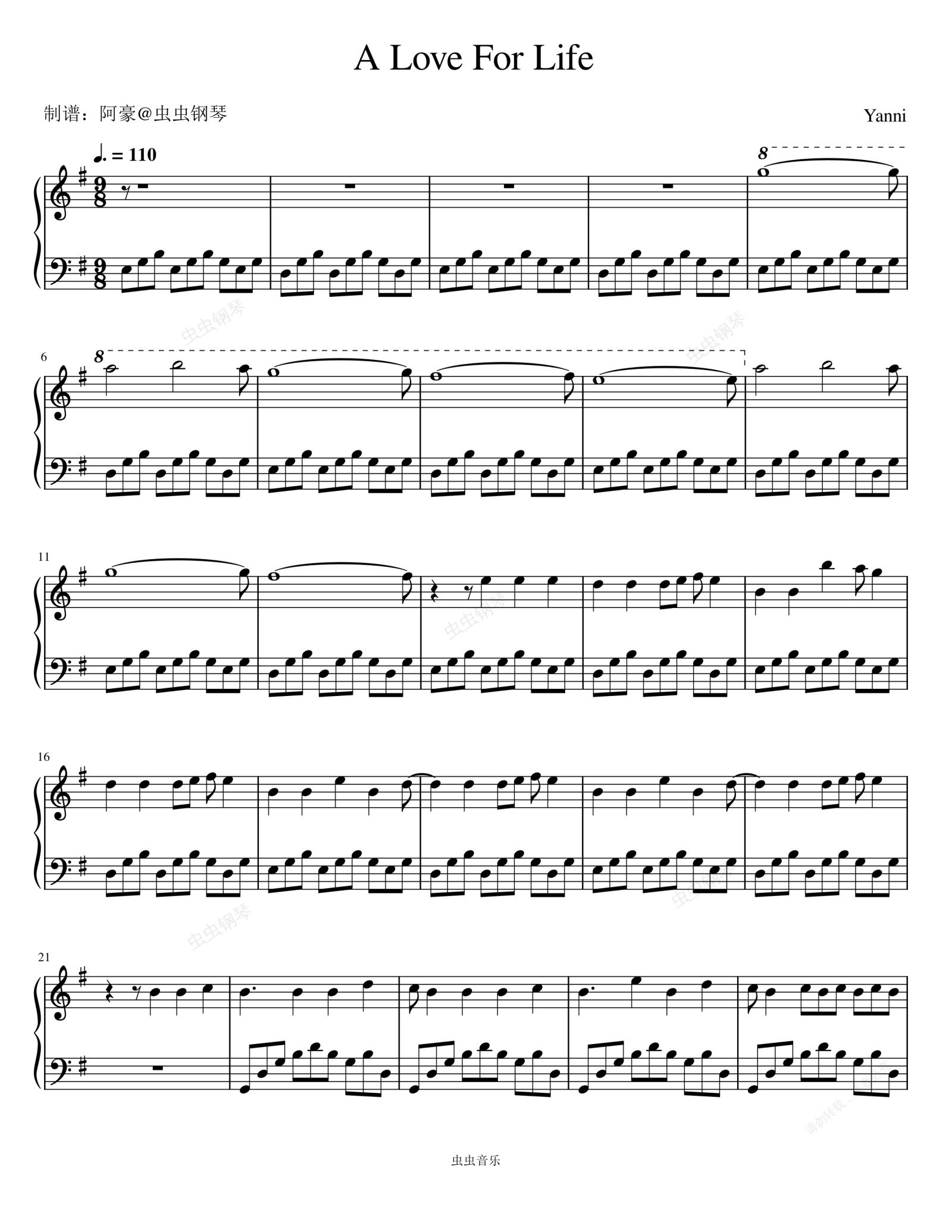 钢琴谱:A Love For Life - Yanni