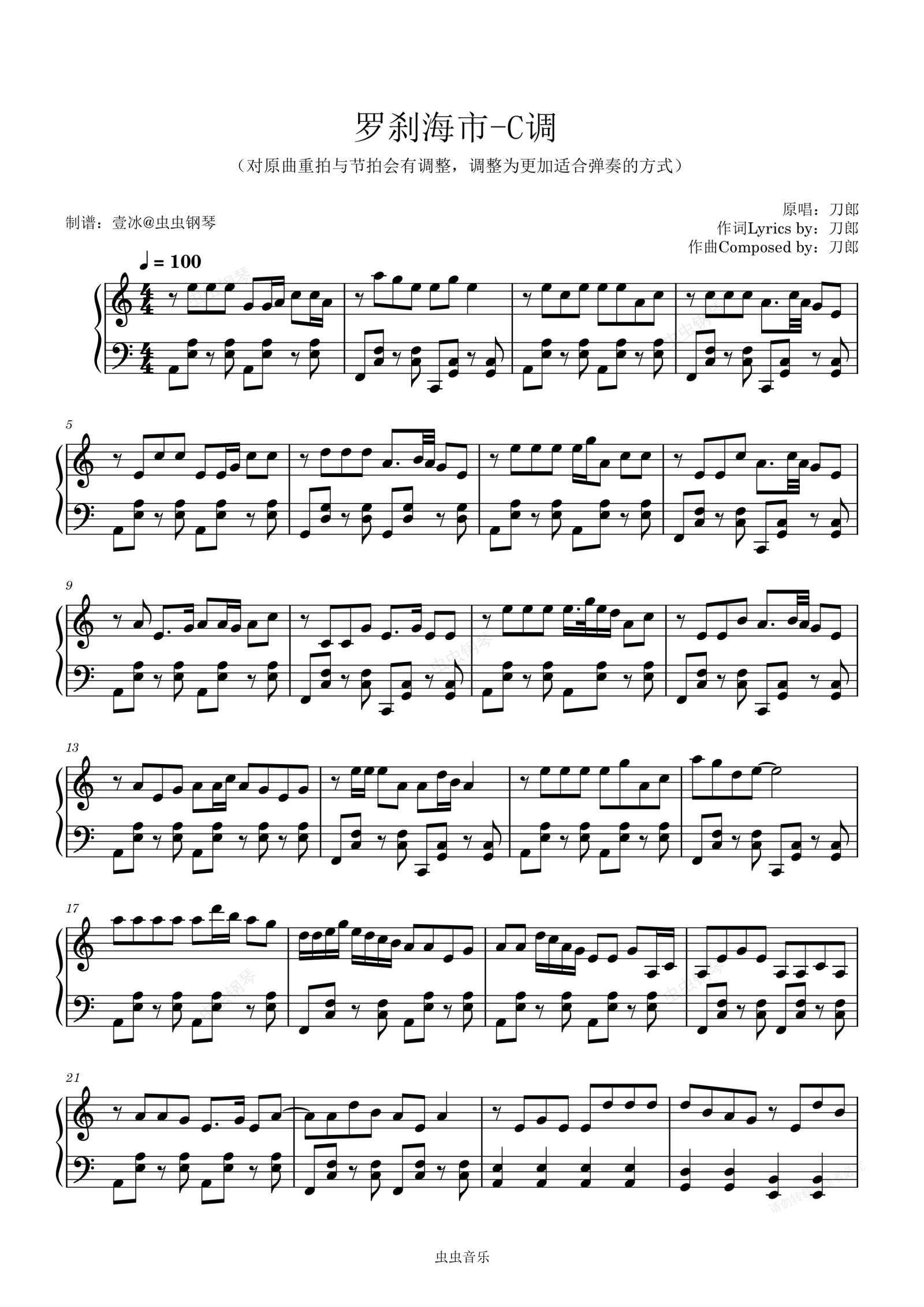 钢琴谱:罗刹海市//刀郎-C调 简单易上手