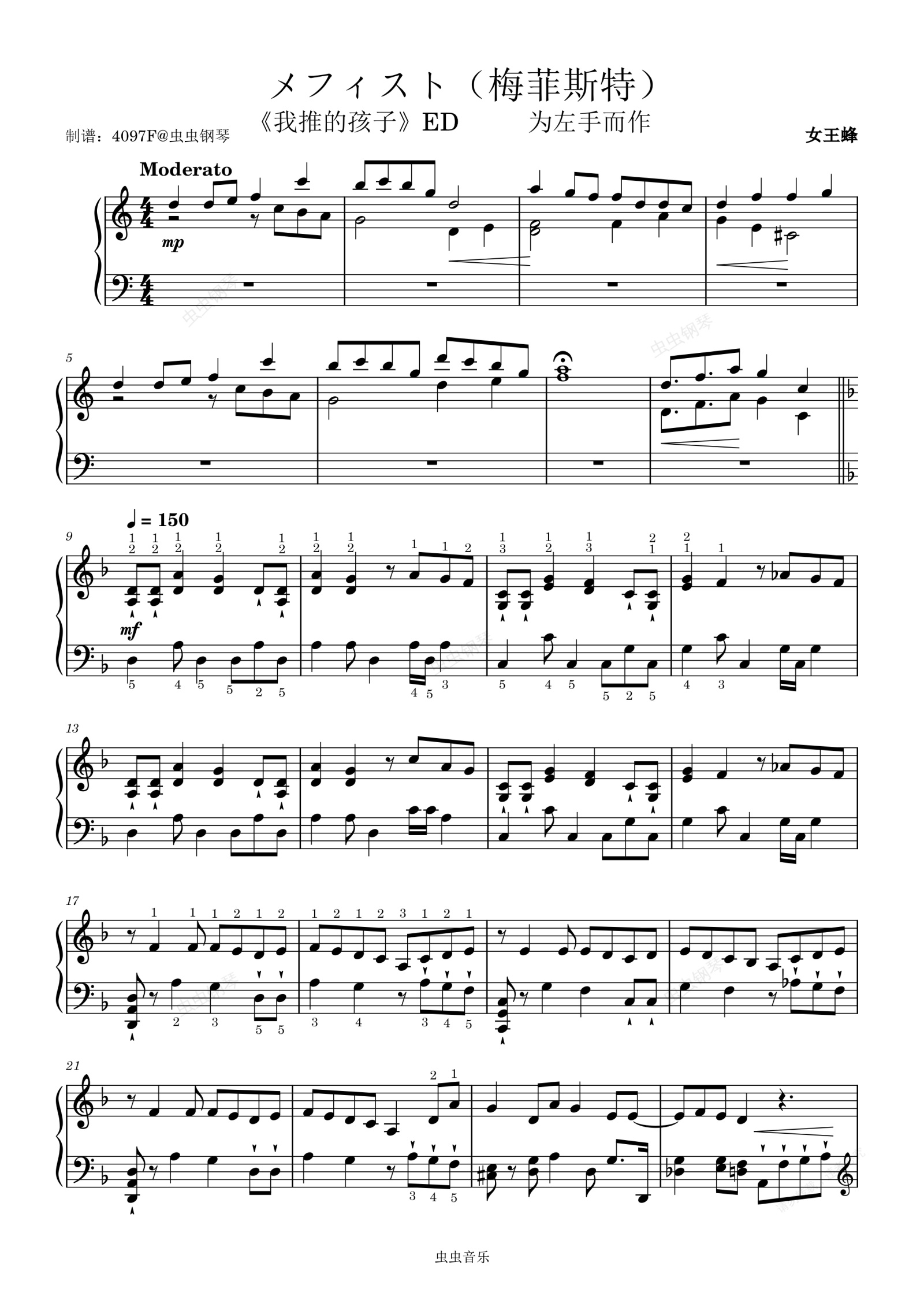 钢琴谱:我推的孩子ED《メフィスト(梅菲斯特)》 左手独奏版