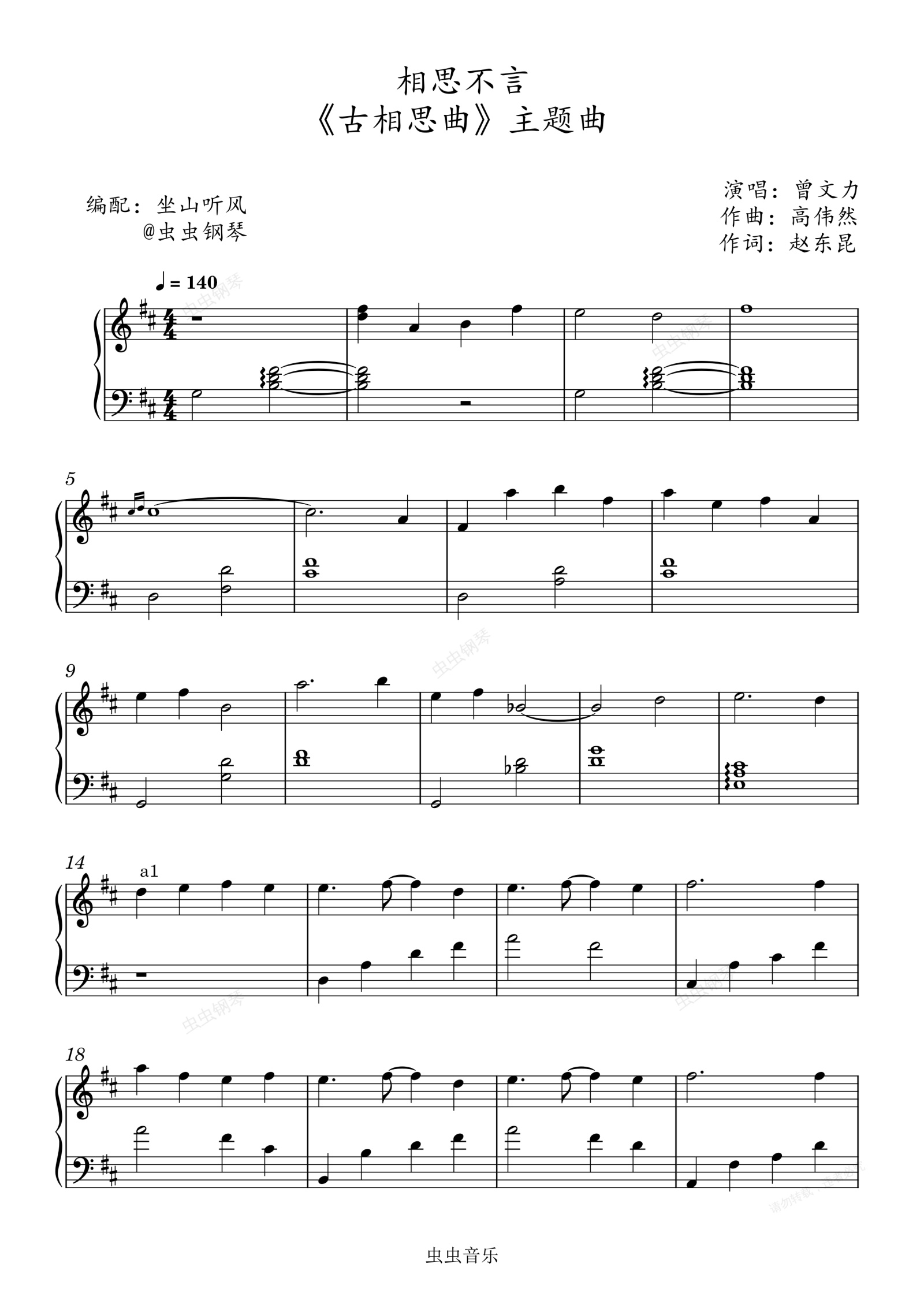 钢琴谱:相思不言——《古相思曲》主题曲【唯美好弹版】