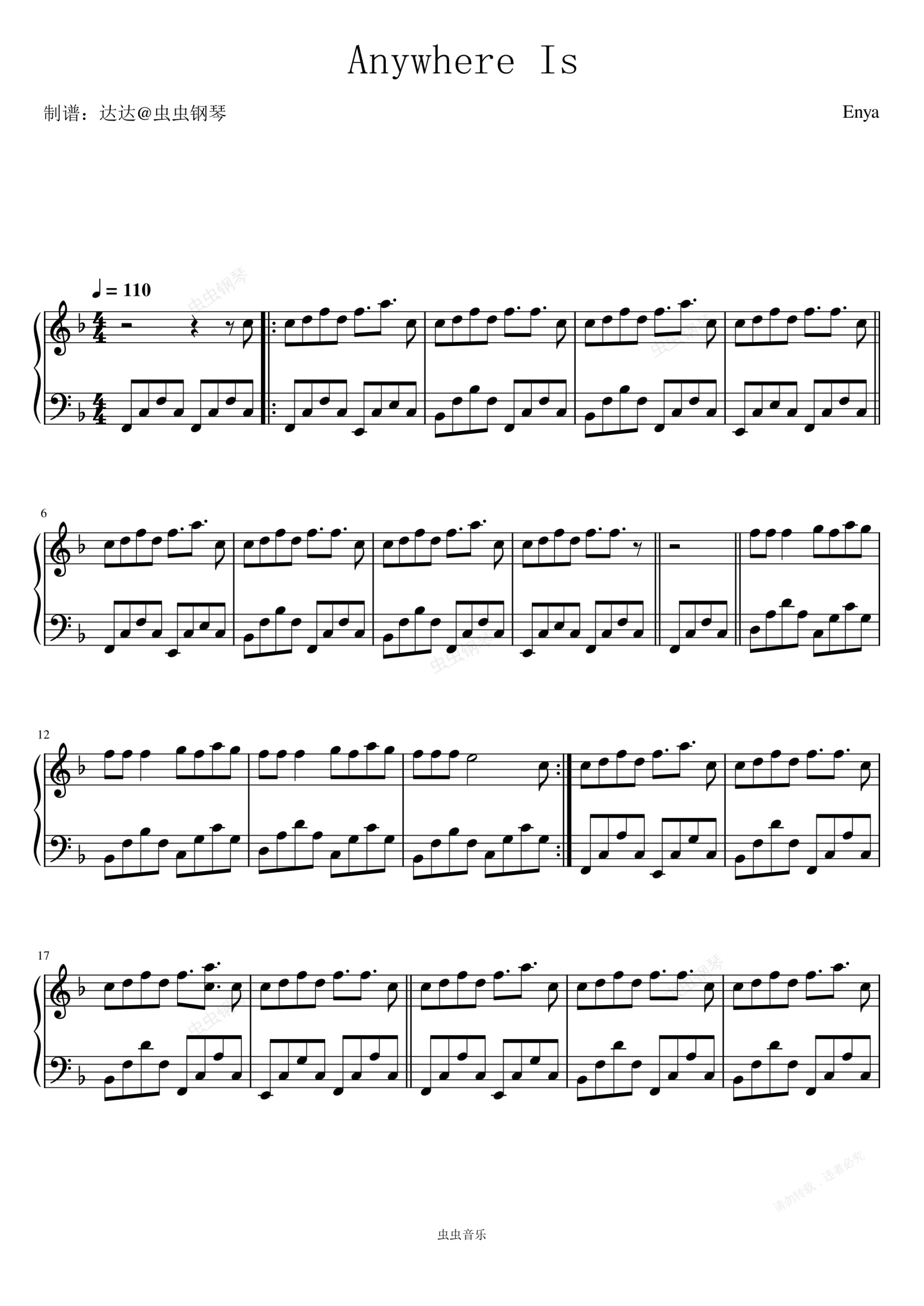 钢琴谱:Anywhere Is - Enya