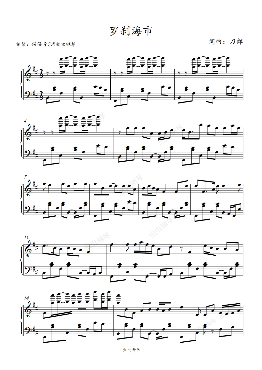 钢琴谱:罗刹海市(简易版)