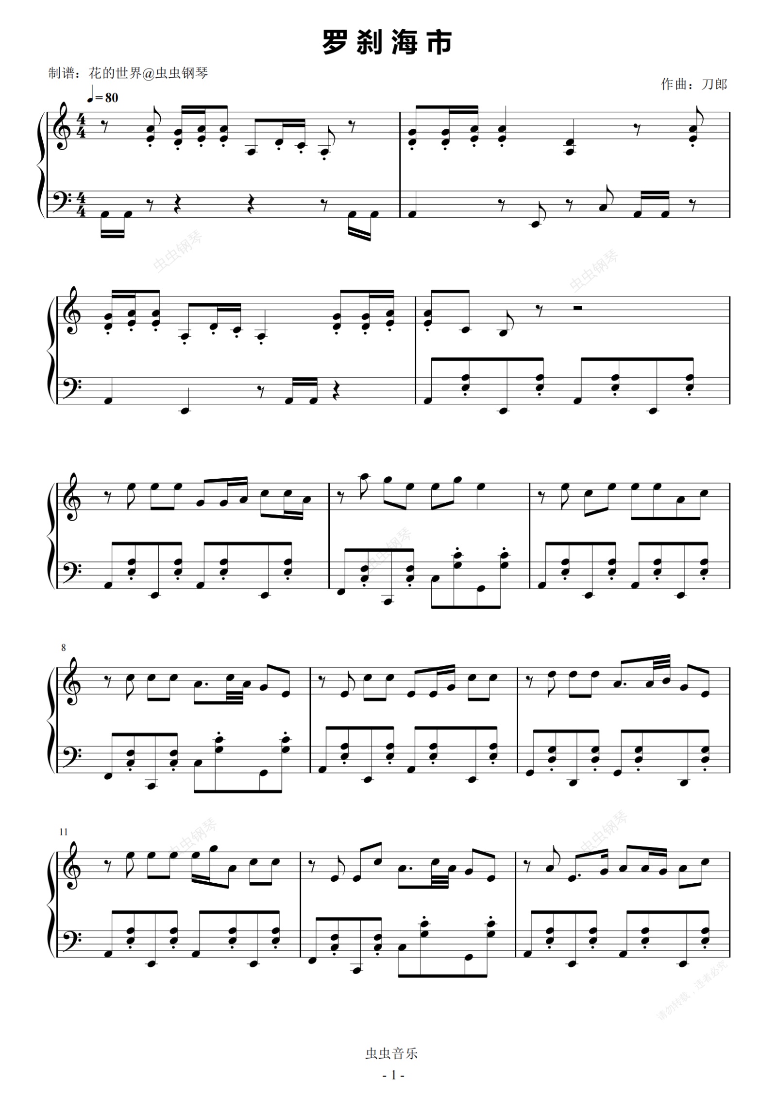 钢琴谱:罗刹海市 C调简易版 刀郎