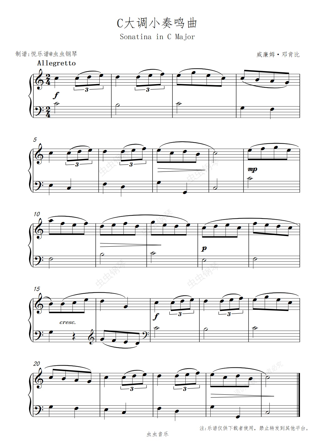 钢琴谱:C大调小奏鸣曲//Sonatina in C Major-免费乐谱【清新】