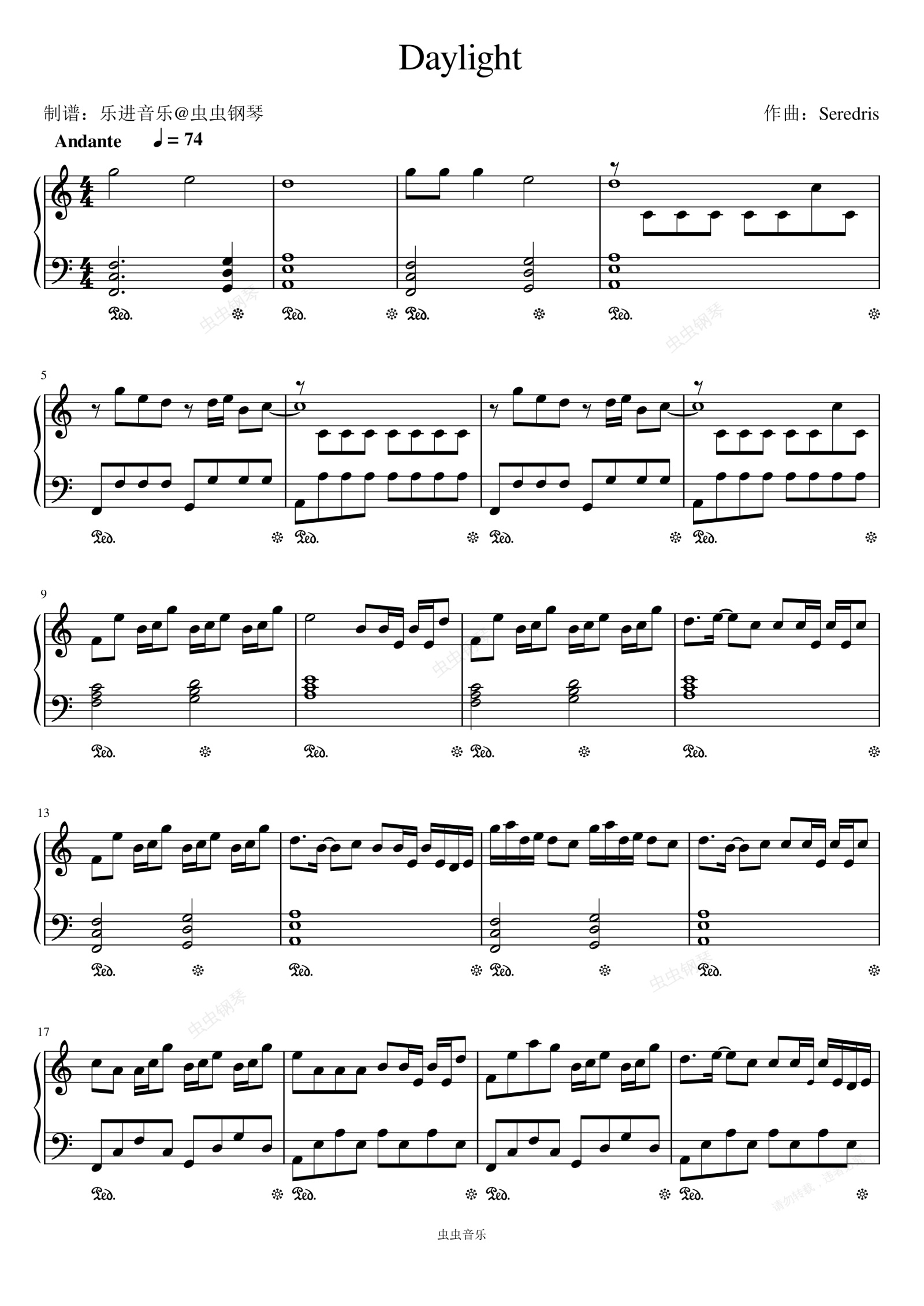 钢琴谱:《Daylight》C调