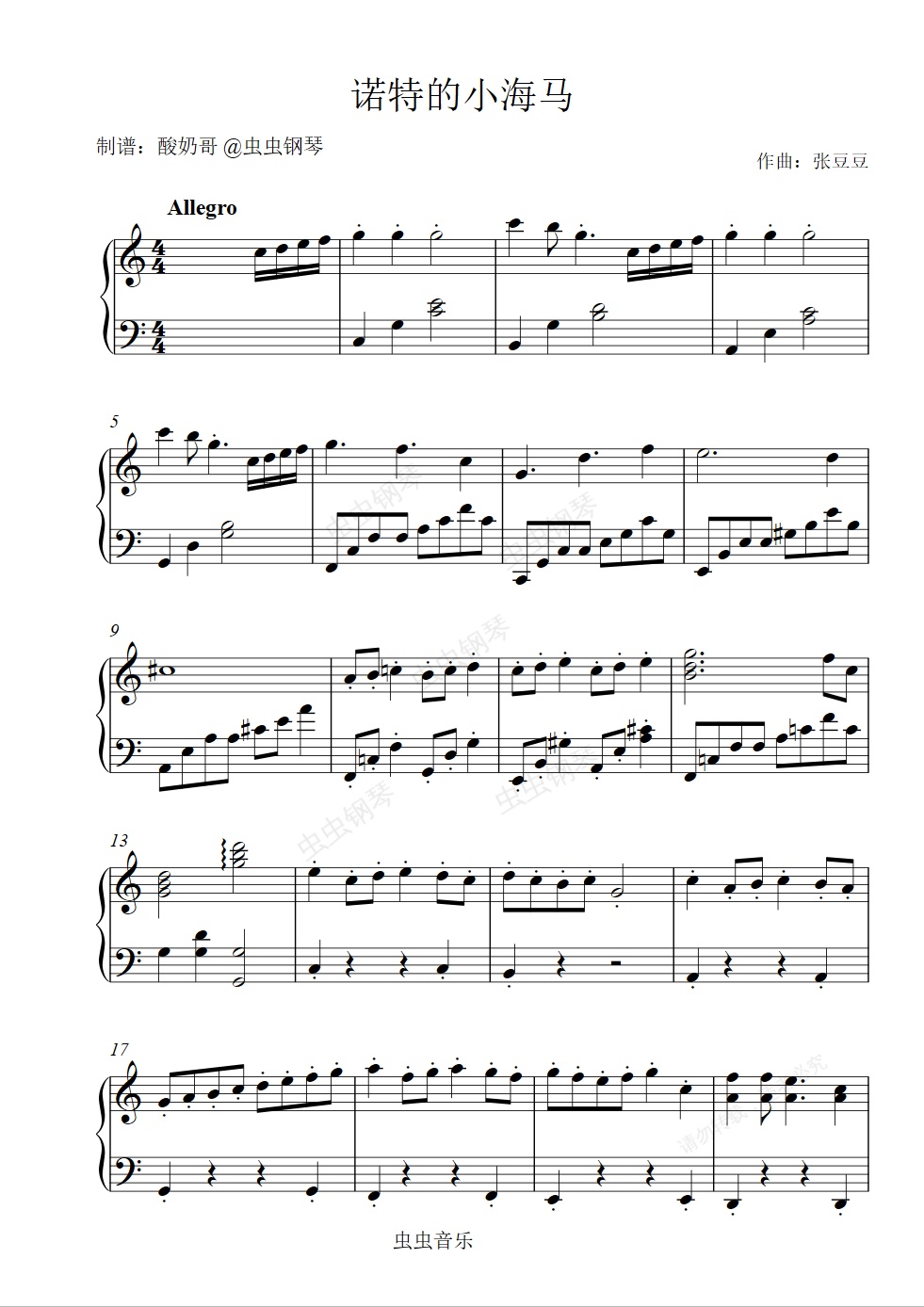 钢琴谱:诺特的小海马《青春正能量我是女神》电视剧配乐