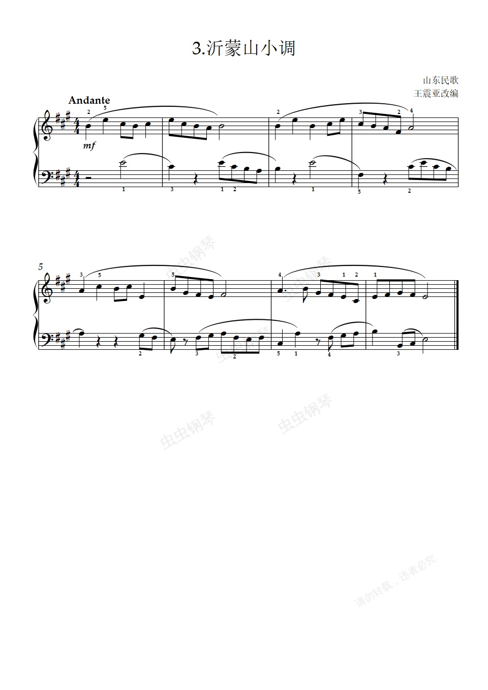 钢琴谱:1级 B项 3.沂蒙山小调