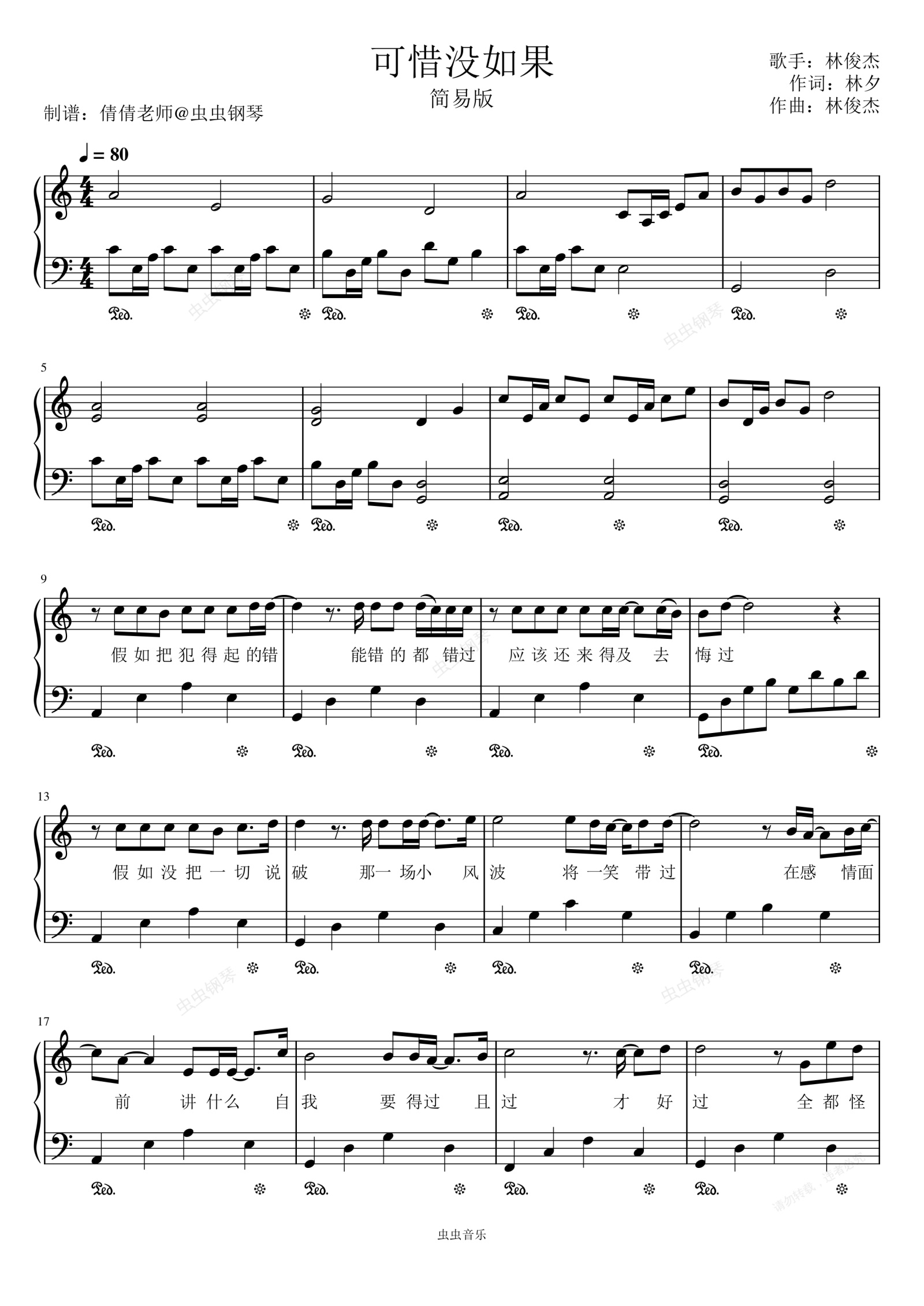 钢琴谱:可惜没如果-林俊杰-C调完整初学简单易版