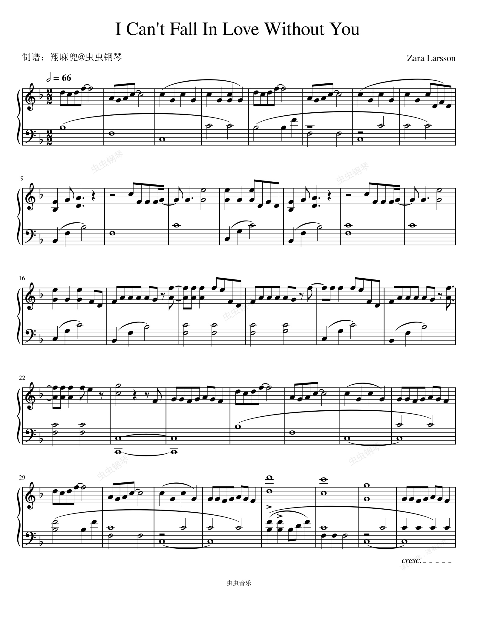 钢琴谱:I Can't Fall in Love Without You (Explicit) - Zara Larsson (莎拉·拉尔森)