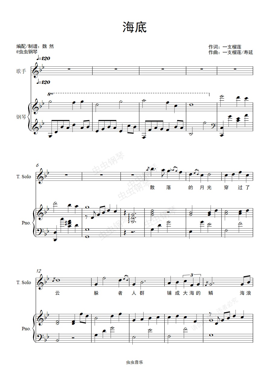 钢琴谱:海底(重制版正谱)——『忧伤歌声』
