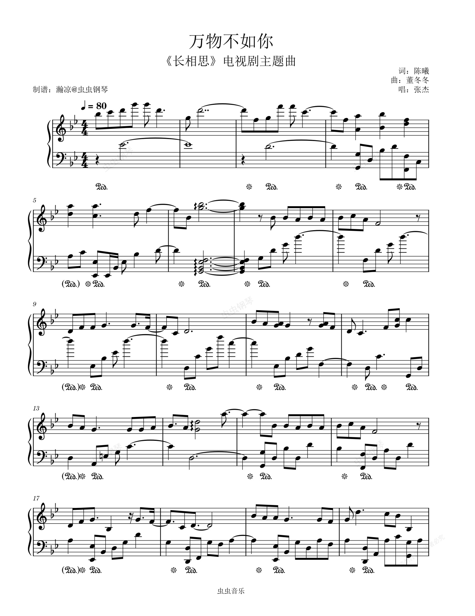 钢琴谱:万物不如你(《长相思》电视剧主题曲)-张杰 独奏谱
