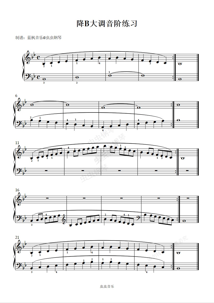 钢琴谱:降B大调音阶练习