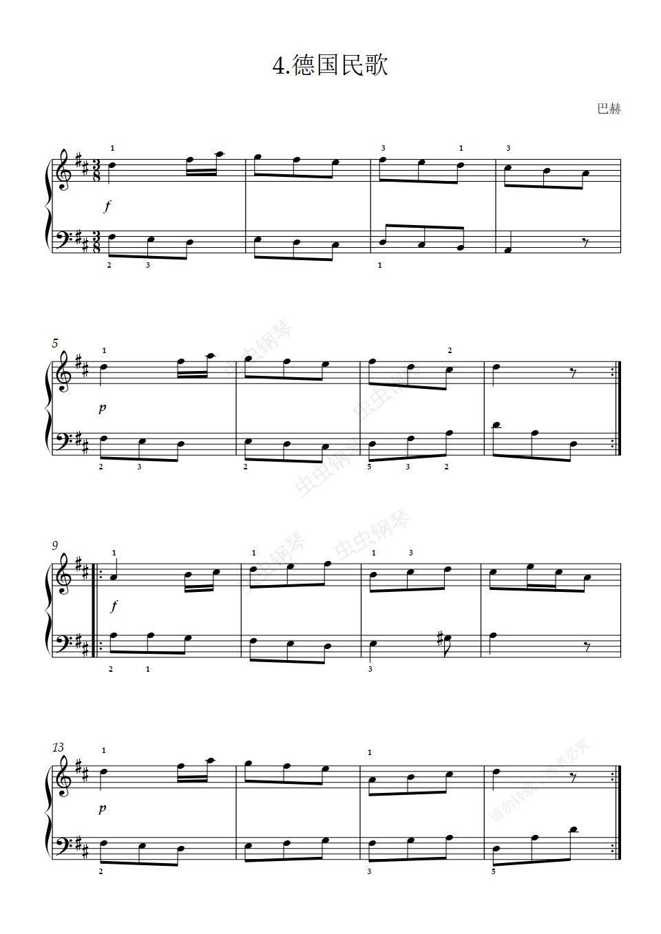 钢琴谱:1级 B项 4.德国民歌