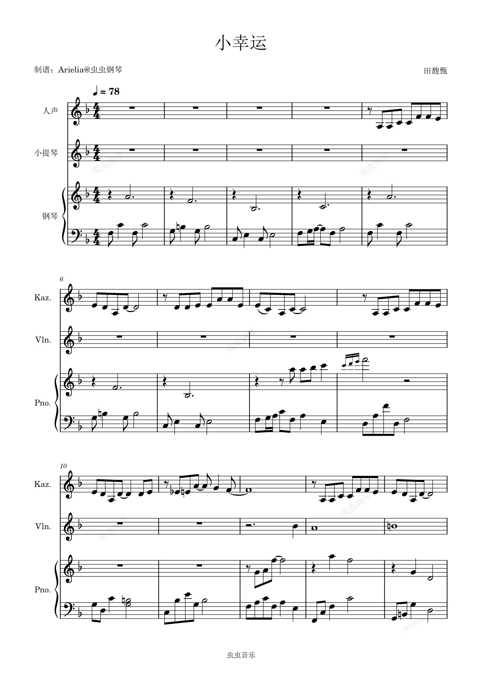 钢琴谱:田馥甄-小幸运(钢琴小提琴伴奏版)