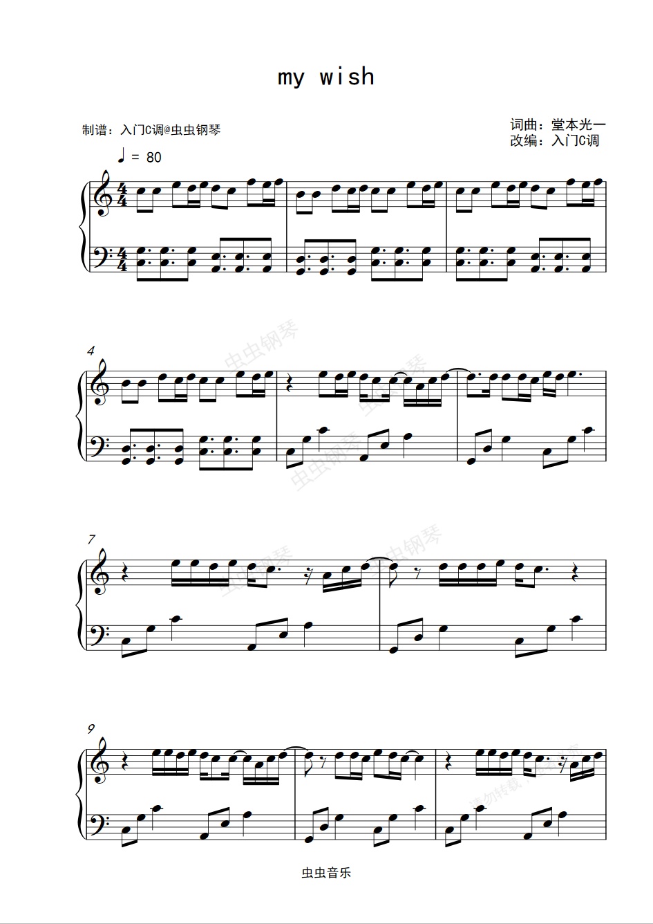 钢琴谱:KinKi Kids《My Wish》入门C调无转调简单版