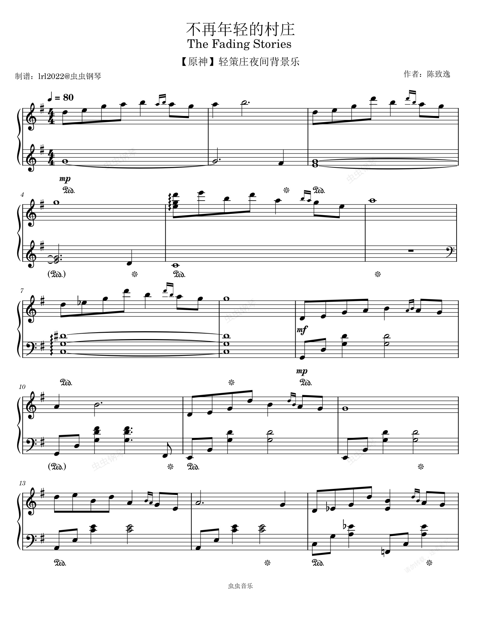 钢琴谱:The Fading Stories - 不再年轻的村庄 - 【原神】轻策庄夜间背景乐 - 钢琴独奏