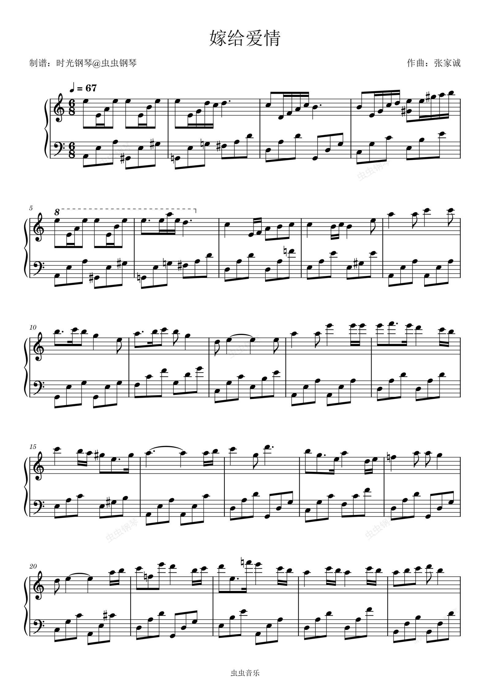 钢琴谱:嫁给爱情 杨千嬅 简单好听