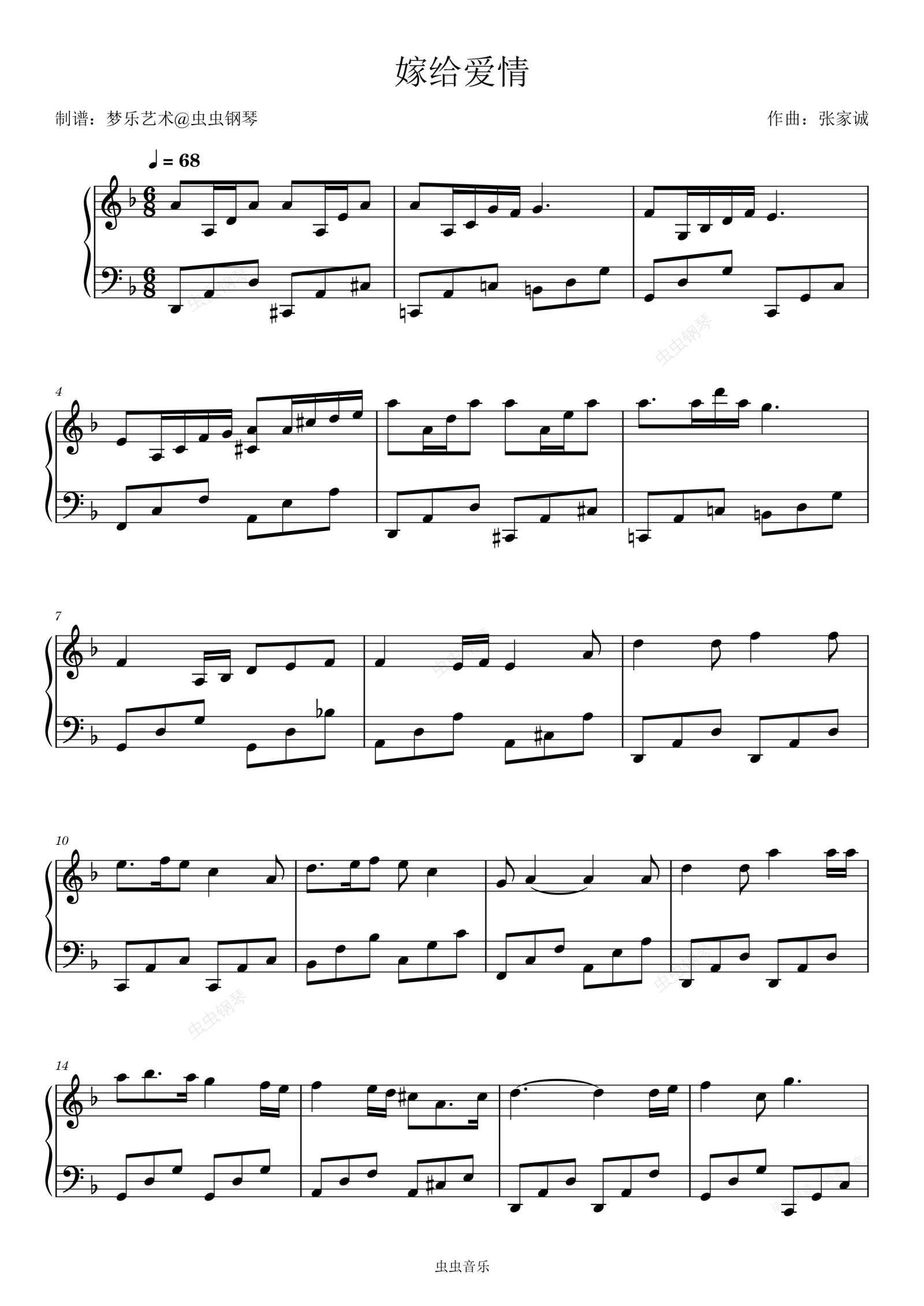 钢琴谱:嫁给爱情 杨千嬅 高度还原完整版