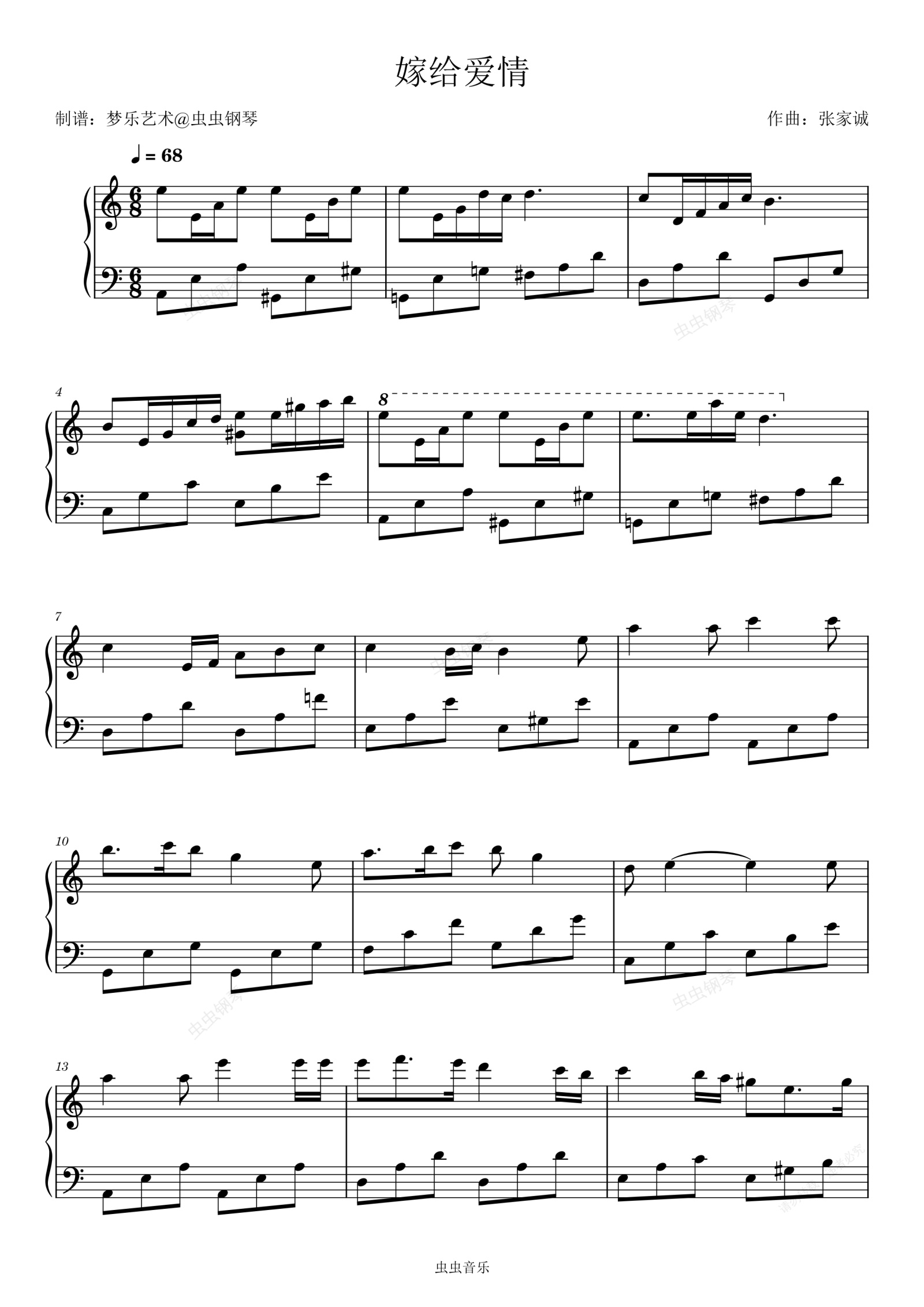 钢琴谱:嫁给爱情 杨千嬅 优化易弹