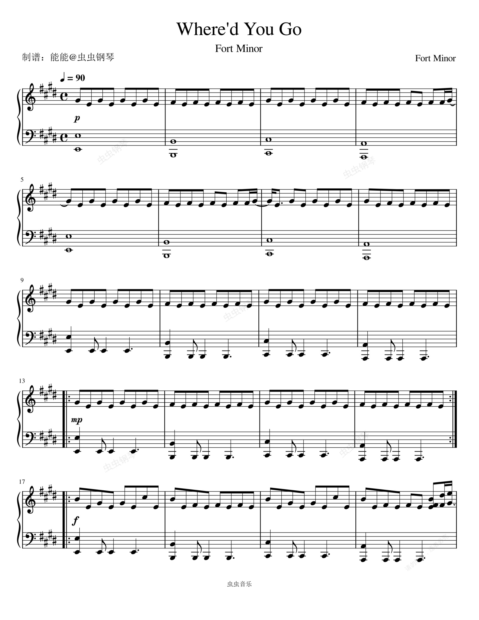 钢琴谱:Where'd You Go - Fort Minor