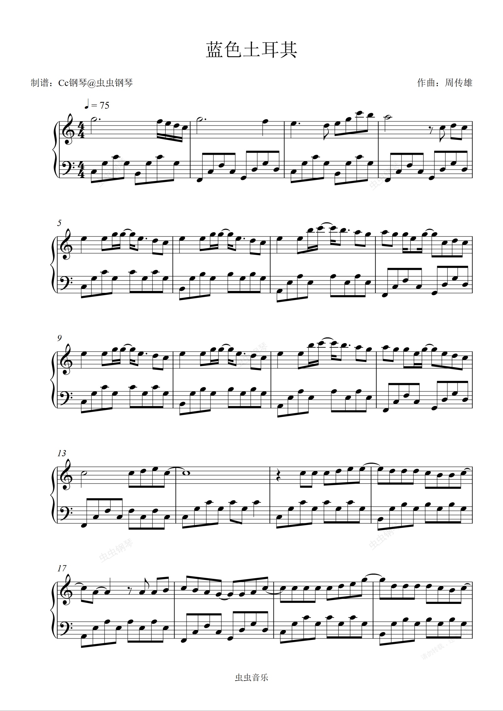 钢琴谱:蓝色土耳其 C调 好听易上手