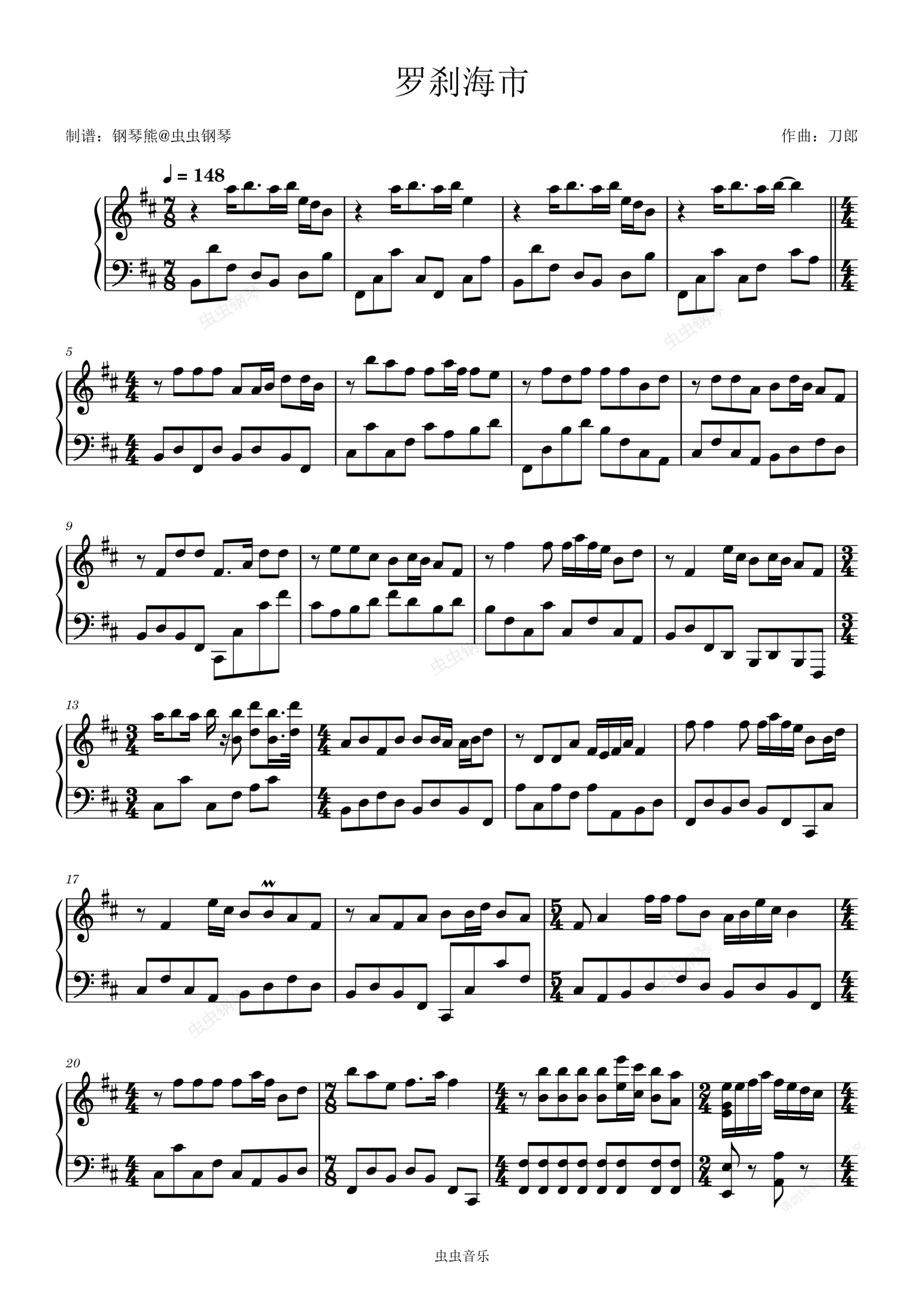 钢琴谱:罗刹海市 刀郎 极简还原版~