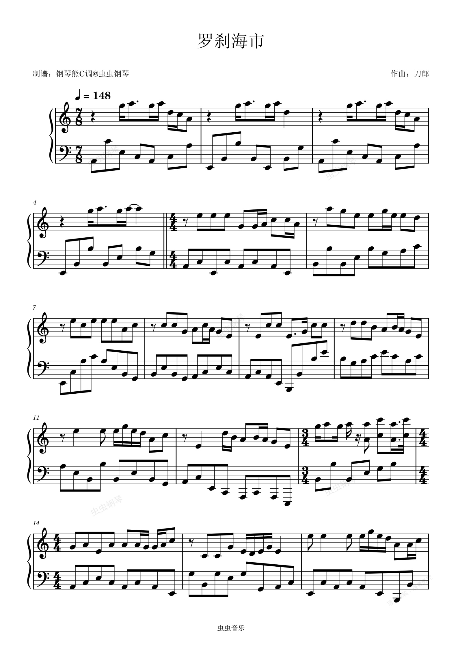 钢琴谱:C大调 罗刹海市 极致还原版~