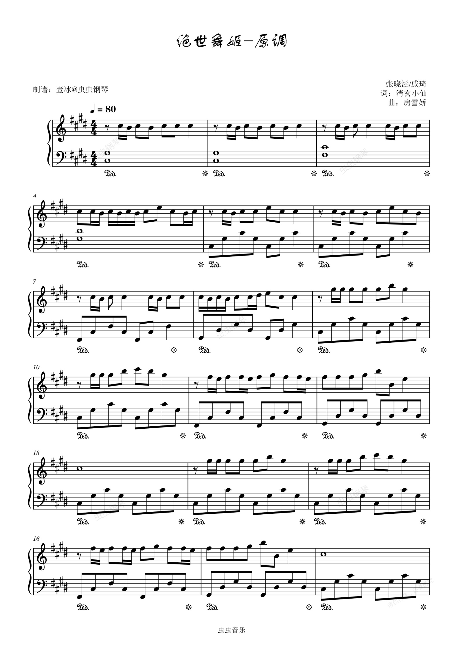 钢琴谱:绝世舞姬//张晓涵/戚琦-原调 简单易上手