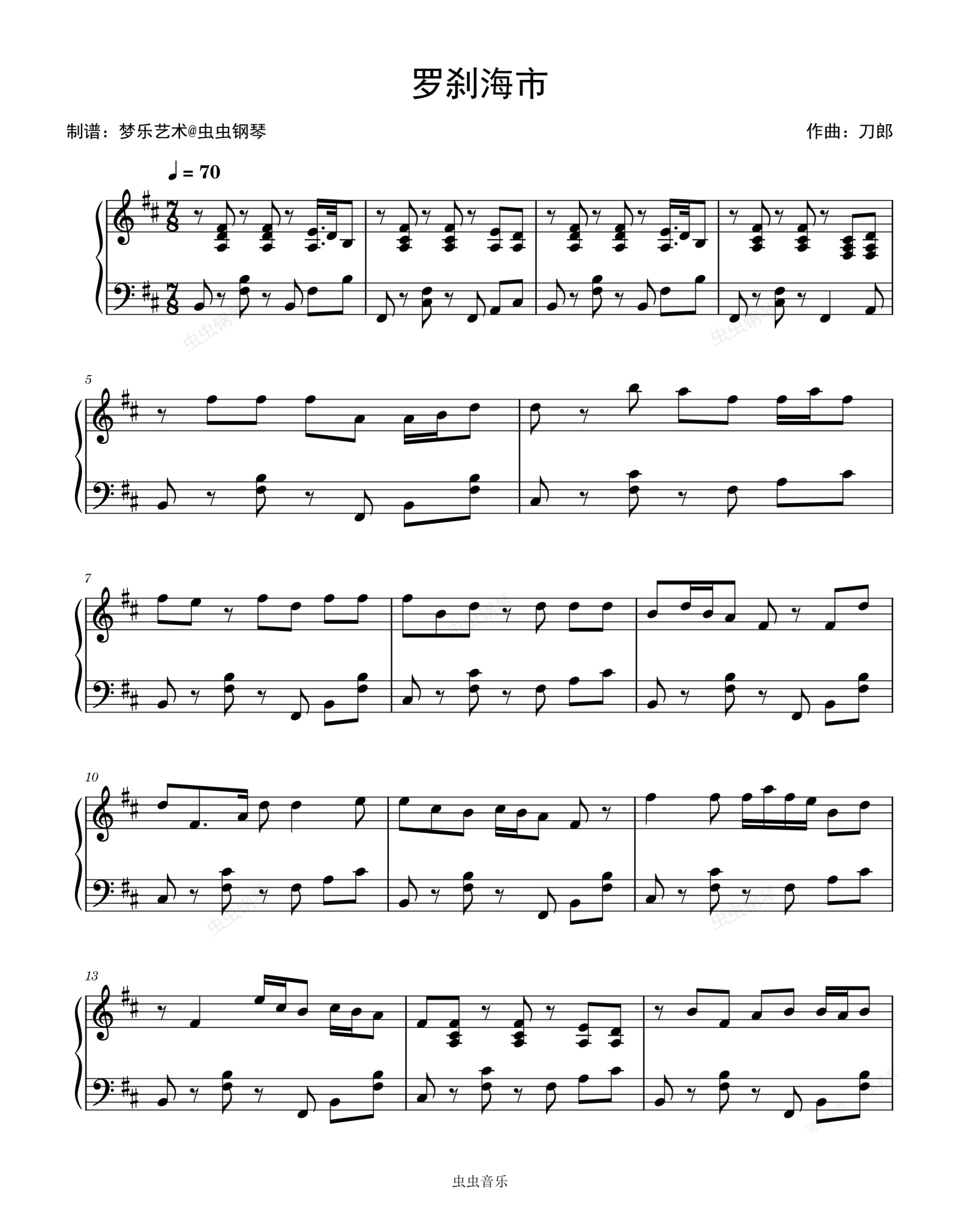钢琴谱:罗刹海市 刀郎 原调/优化易弹