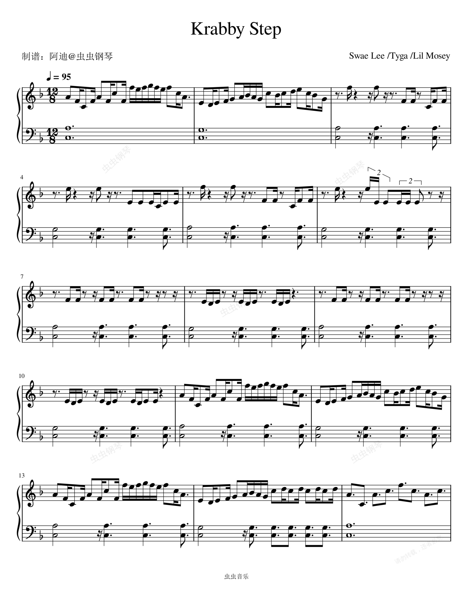 钢琴谱:Krabby Step (Music From "Sponge On The Run" Movie) - Swae Lee/Tyga/Lil Mosey