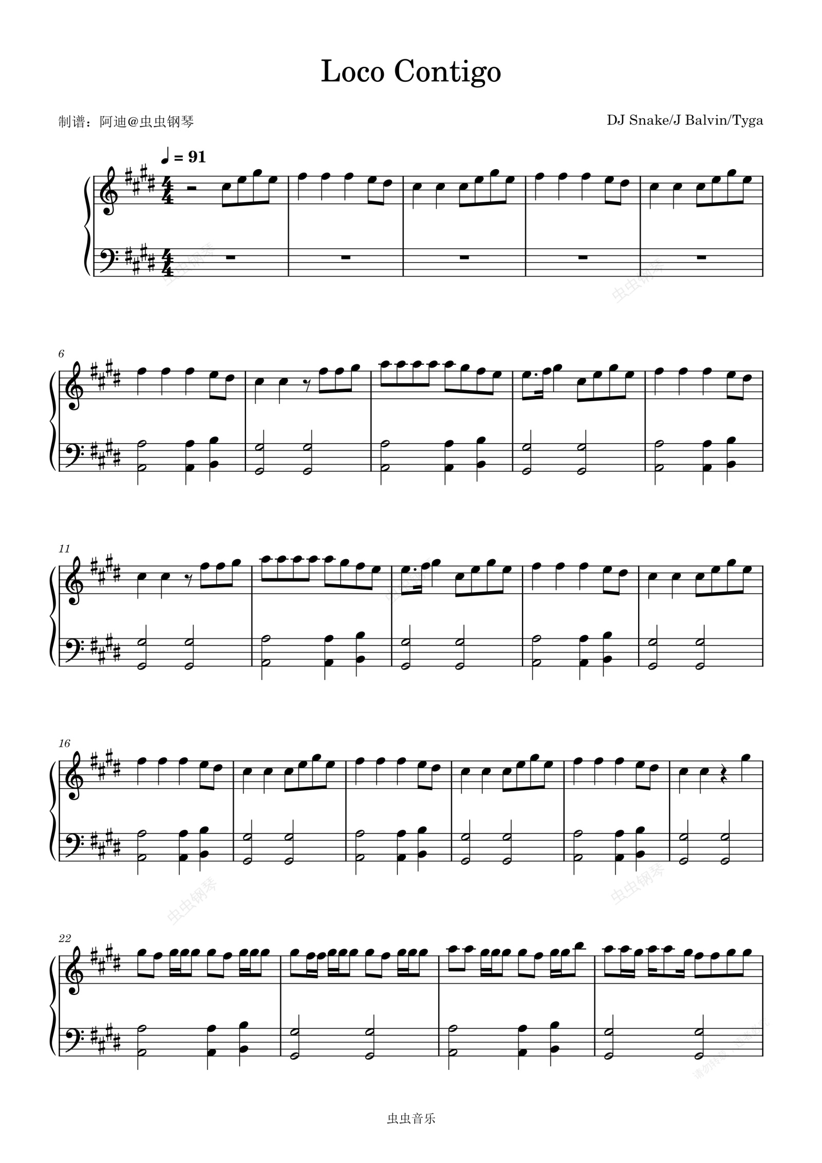 钢琴谱:Loco Contigo - DJ Snake/J Balvin/Tyga