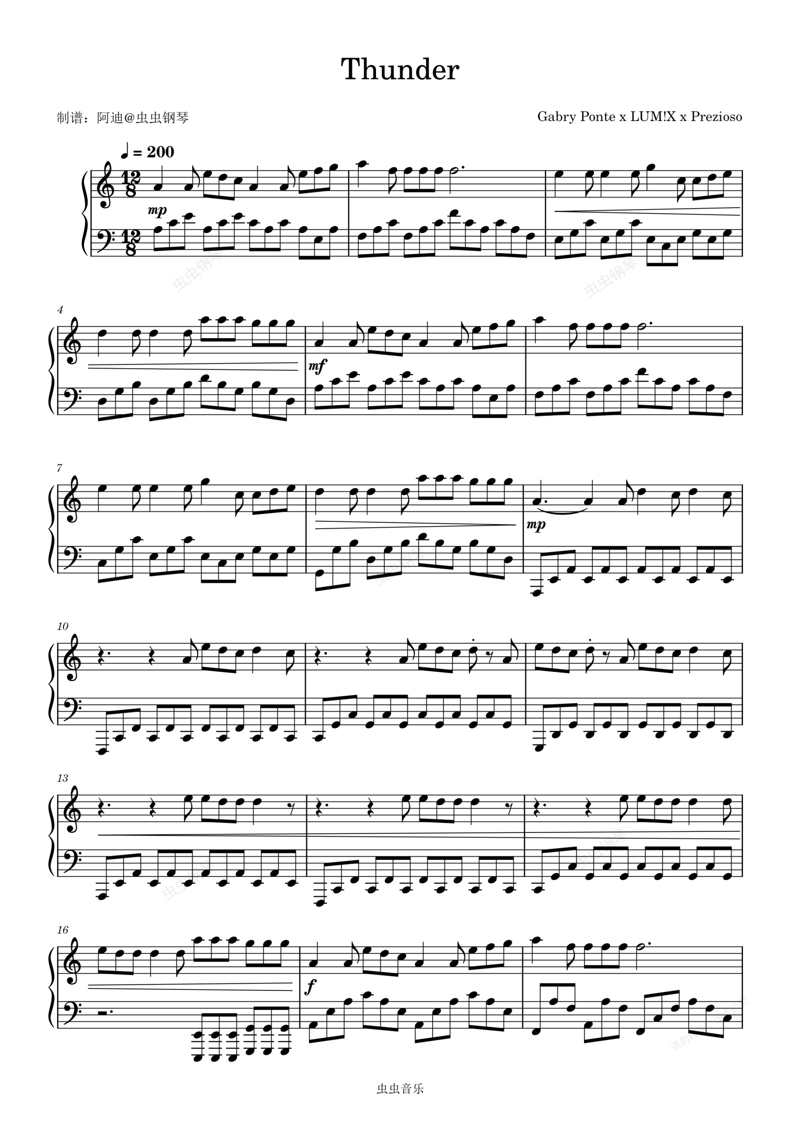 钢琴谱:Thunder - Gabry Ponte /LUM!X /Prezioso