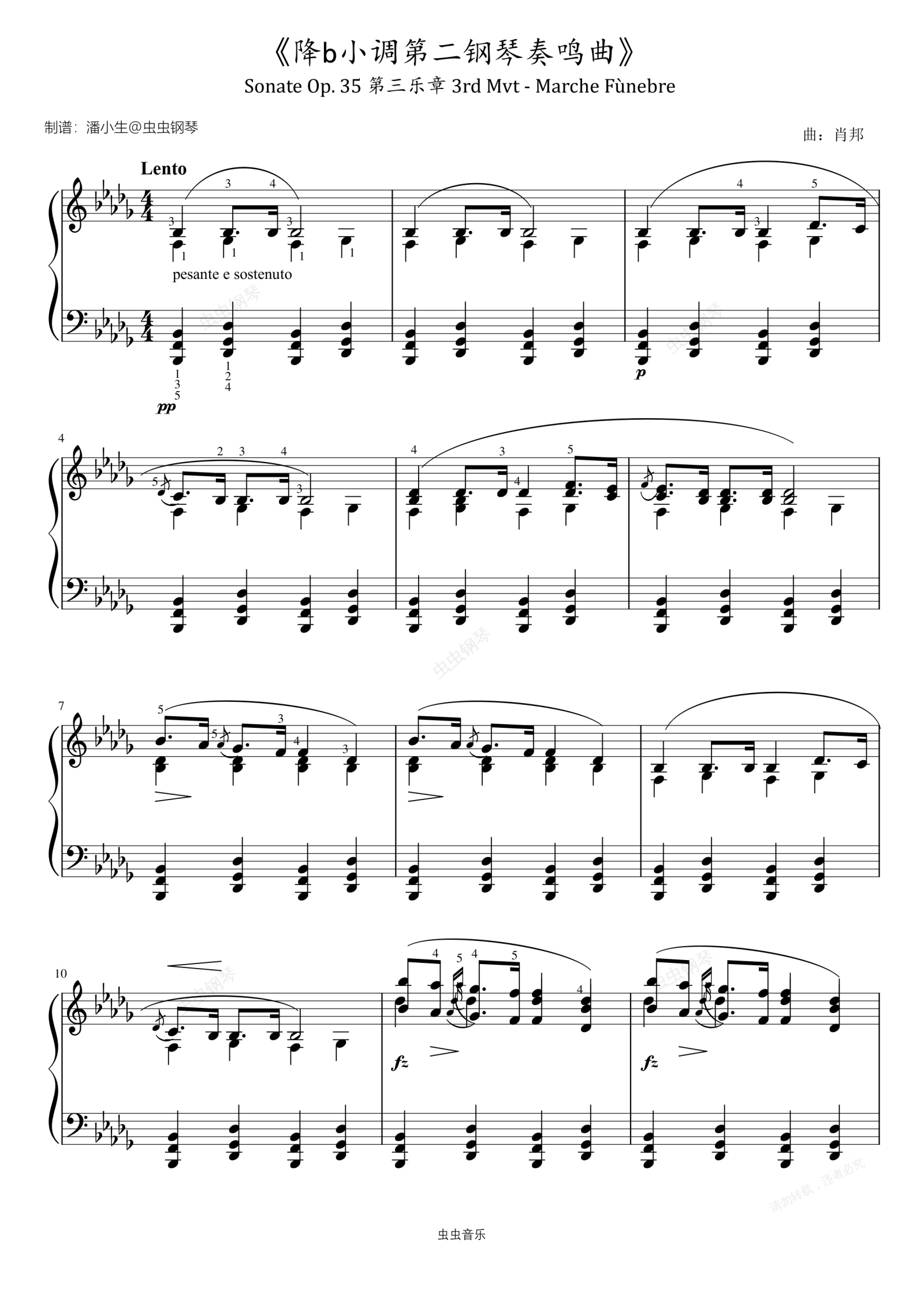 钢琴谱:肖邦《降b小调第二钢琴奏鸣曲》原版带指法 第三乐章 Sonate Op. 35 Marche Fùnebre