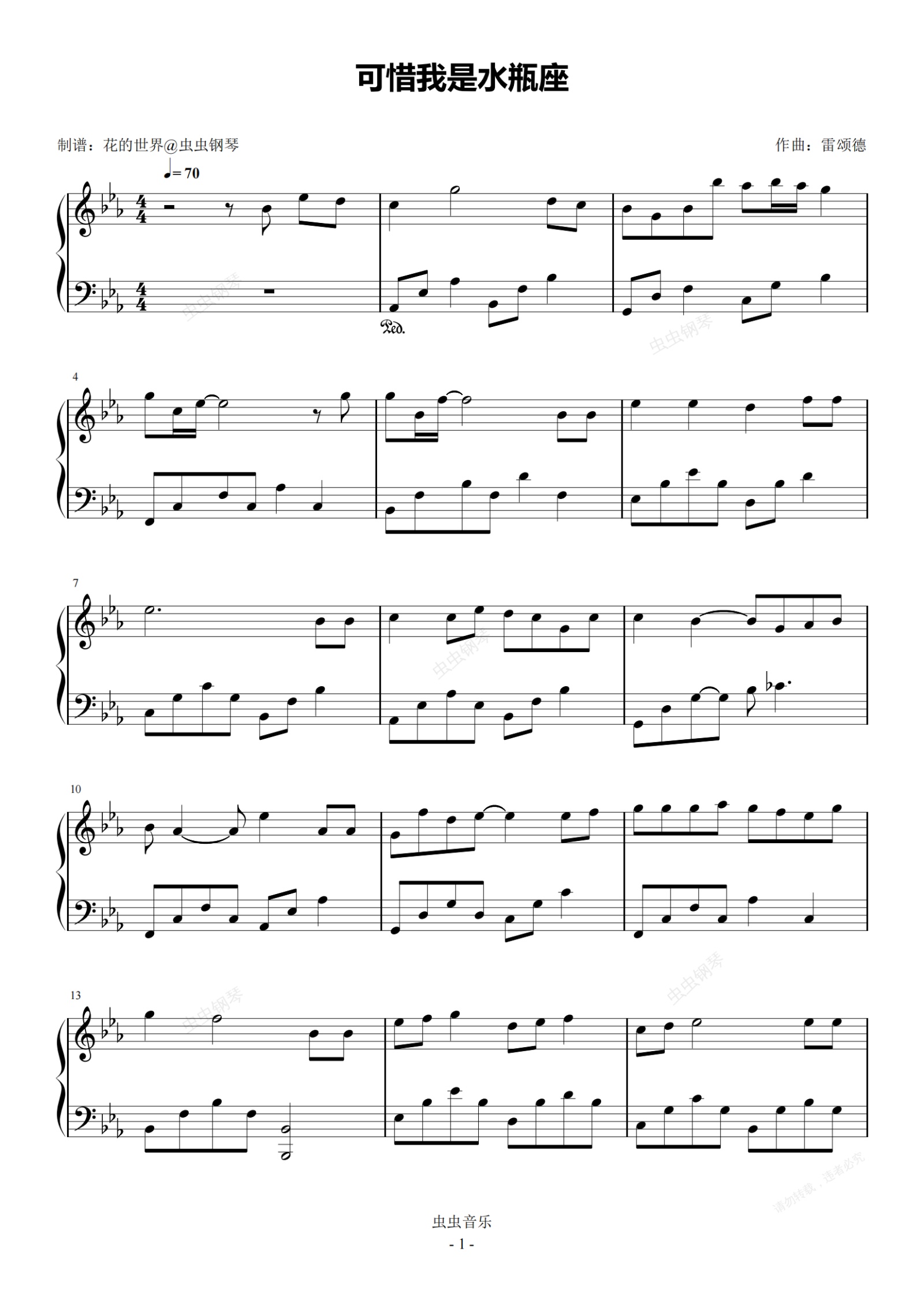 钢琴谱:可惜我是水瓶座 原调简易版 杨千嬅