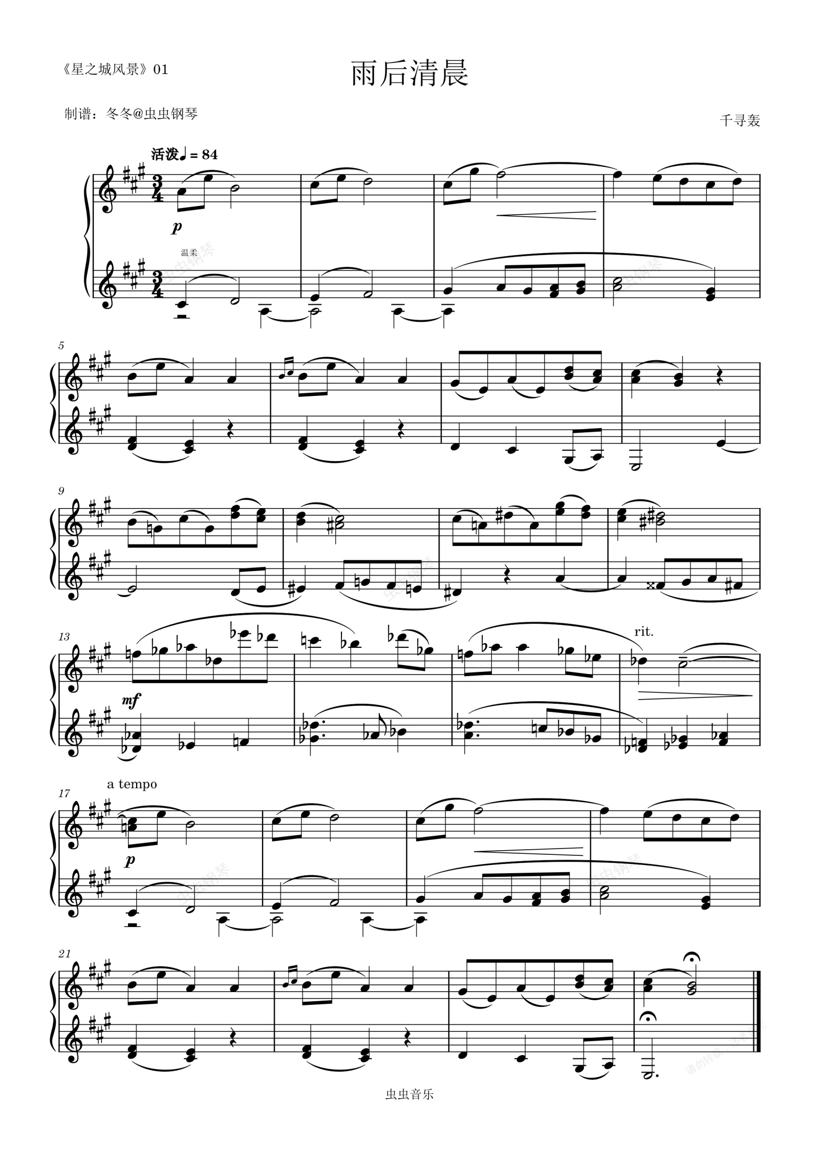 钢琴谱:雨后清晨