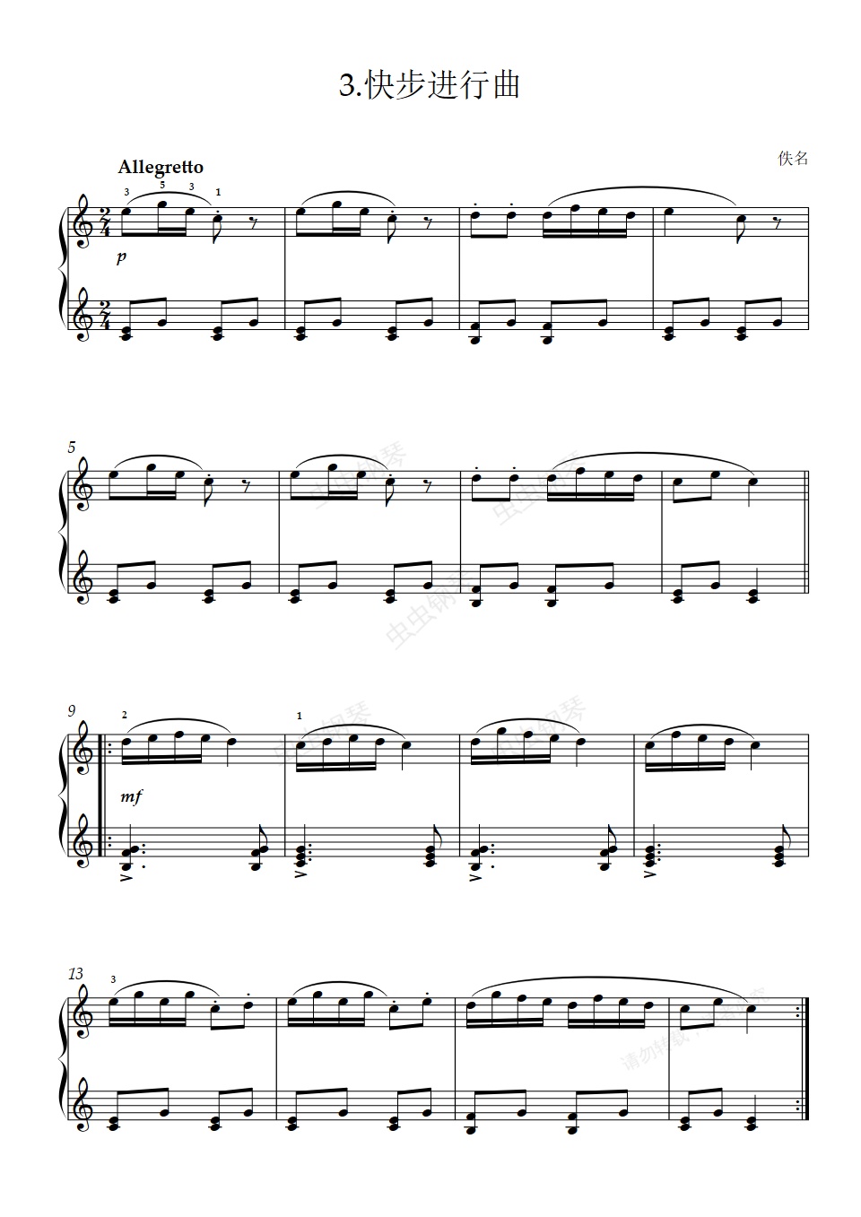 钢琴谱:1级 C项 3.快步进行曲