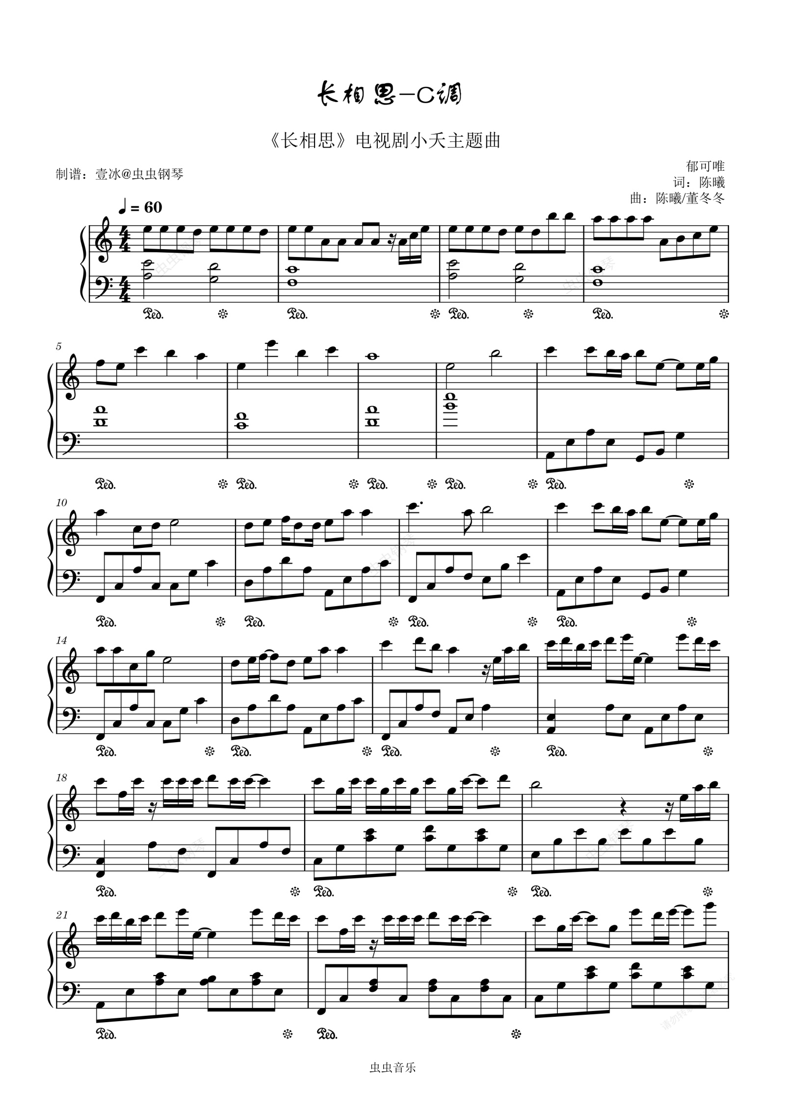 钢琴谱:长相思 (《长相思》电视剧小夭主题曲) - C调